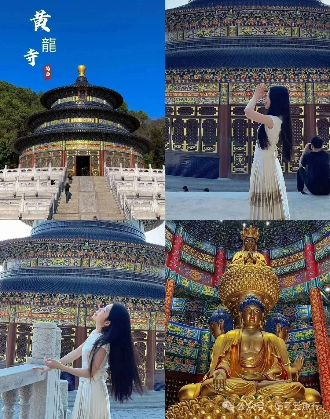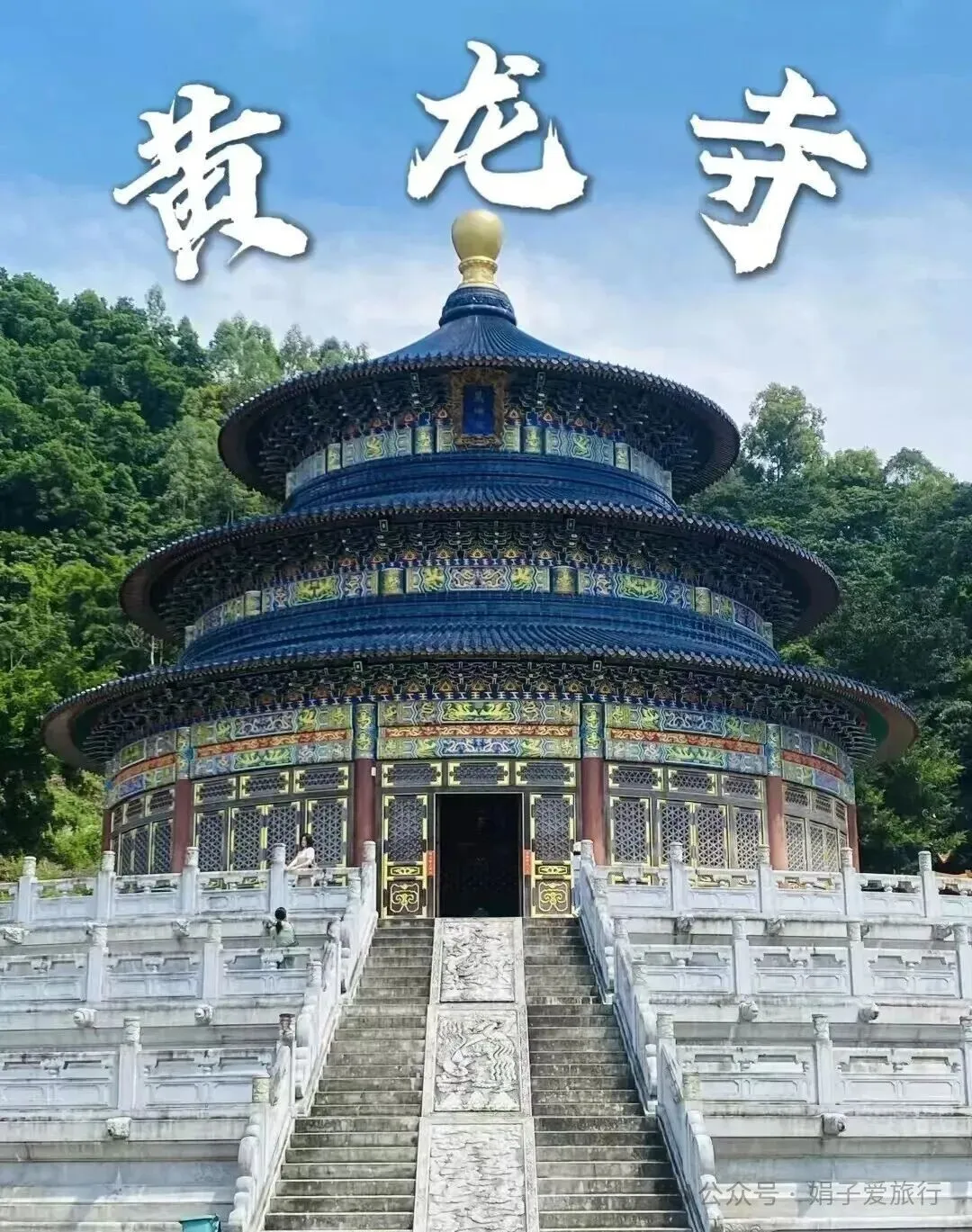 后游,【黄龙寺】位于揭西县五经富镇深坑山脚下,在五经富镇中心的东南方几公里处。经过几年的建设已初具规模。除了传统的佛教建筑外还修得非常漂亮宏伟的小天坛--万佛殿,一时间成为网红地。从外观上看和北京天坛十分相似,底座三层,五个梯道上万佛殿,栏杆皆以灰岗岩雕琢而成。整个主体建筑十分宏伟,内部雕梁画栋描红贴金十分精美。后结束行程返程!