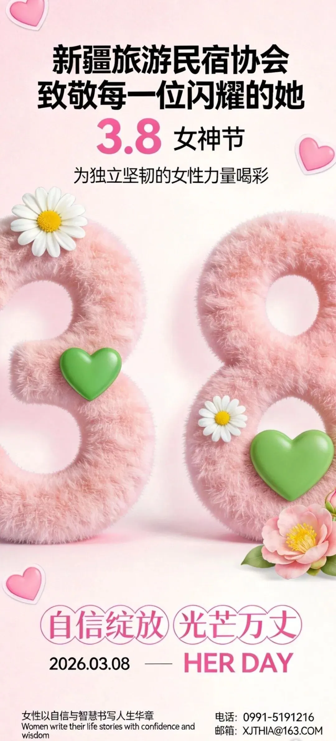 春回大地,万物复苏。在这生机盎然的时节,我们迎来了第96个“三八”国际劳动妇女节。新疆旅游民宿协会谨向奋战在全疆民宿行业各条战线上的全体女性劳动者——我们的民宿主理人、金牌管家、创意设计师、运营能手、保洁阿姨、美食巧手,以及所有默默奉献的女性从业者们,致以最崇高的敬意和最诚挚的节日祝福!