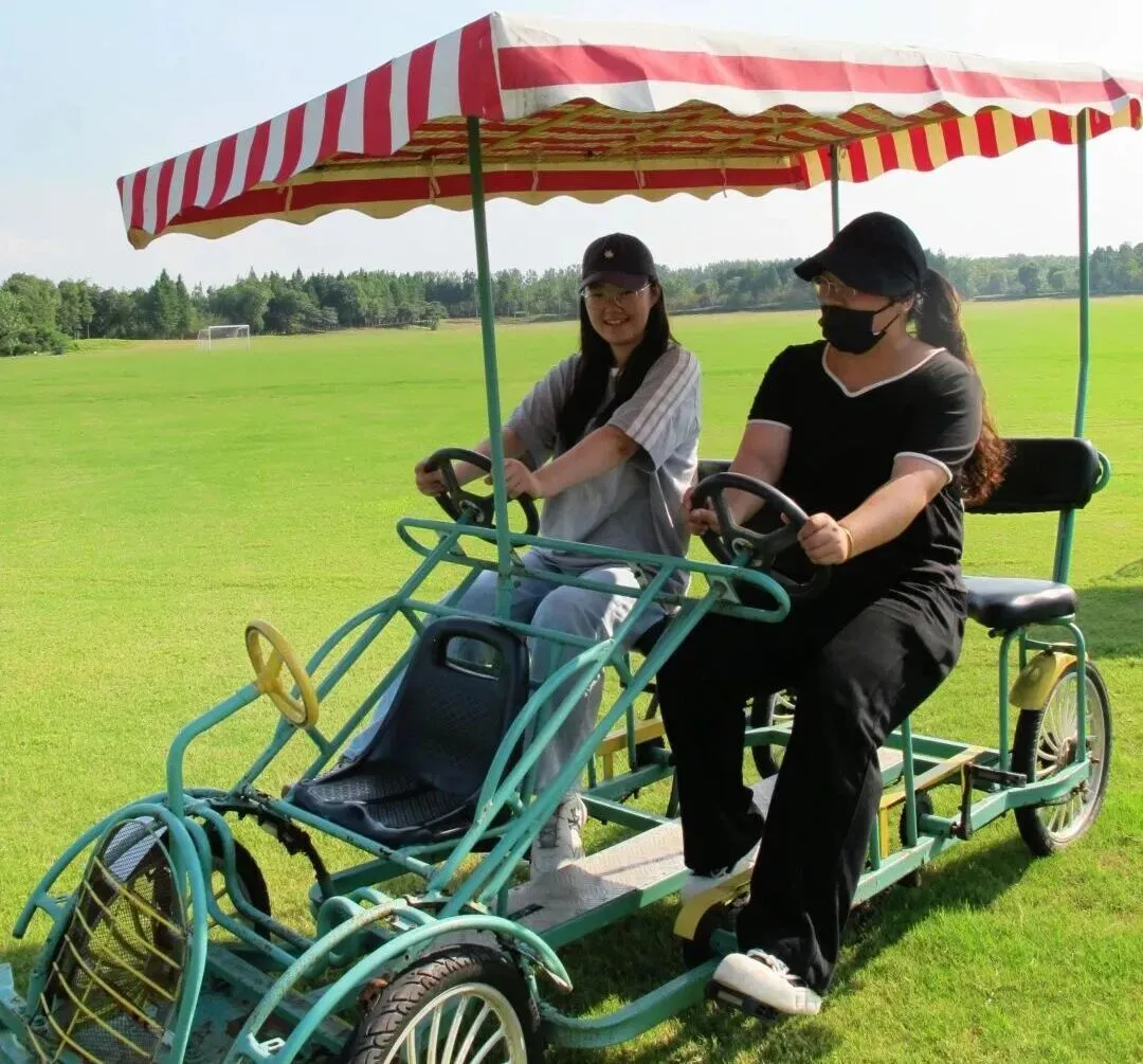 骑上小车,穿行园区,享受春日午后惬意时光。