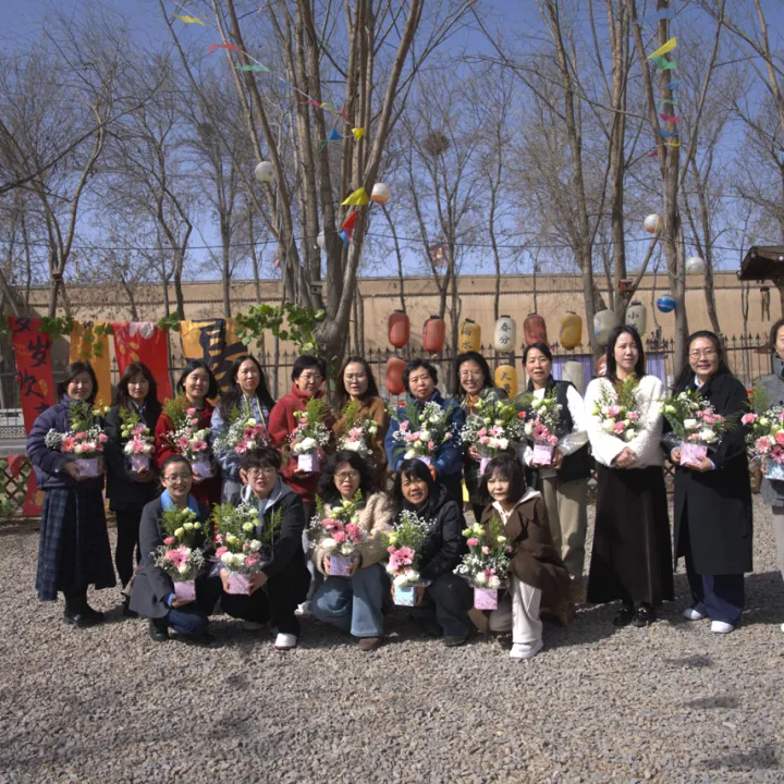 日影西斜,活动接近尾声。大家手捧花篮,在营地合影留念。回程的车上,依然弥漫着节日的余温与欢乐。