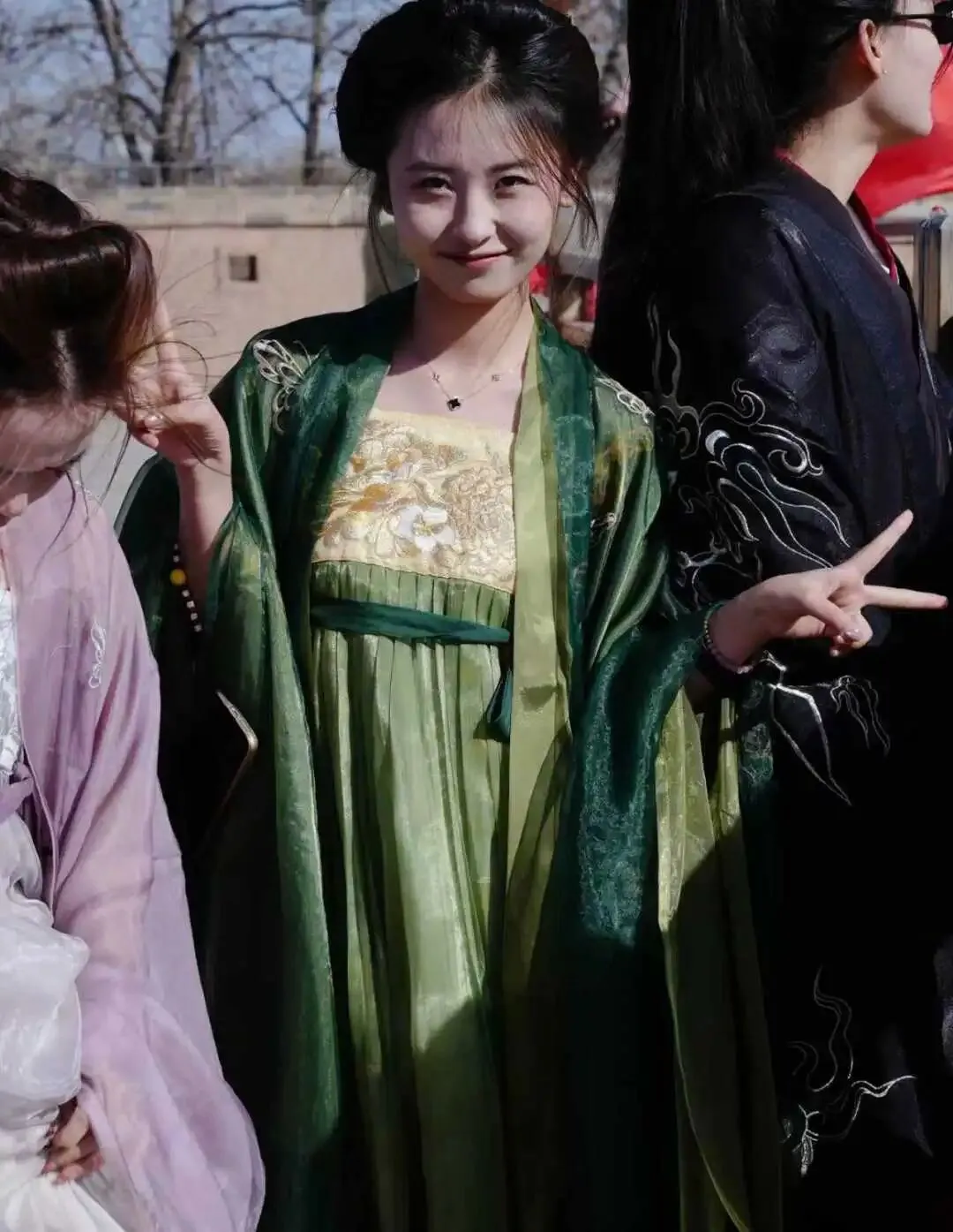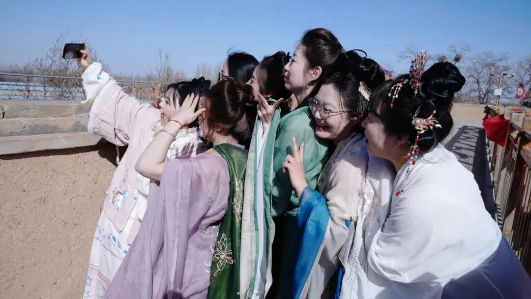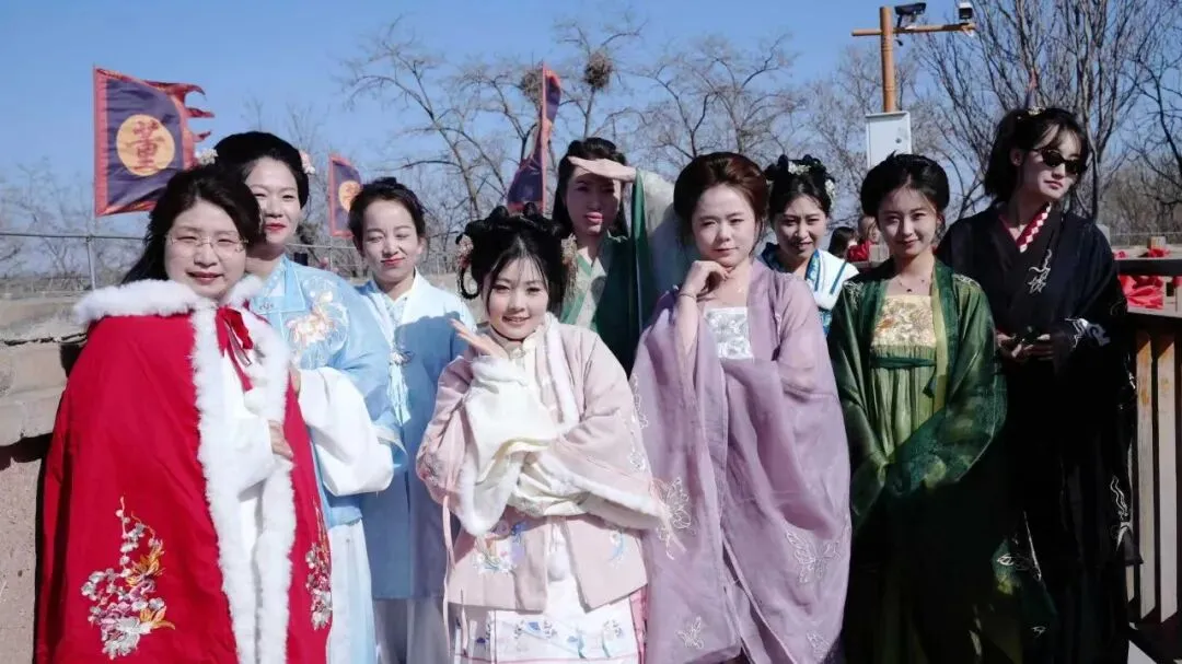 最令人期待的当属汉服体验区。景区精心准备了上百套款式各异的汉服,从唐制襦裙到明制长袄,从端庄典雅到飘逸灵动,应有尽有。女职工们纷纷挑选心仪的服饰,在工作人员帮助下穿戴整齐。
