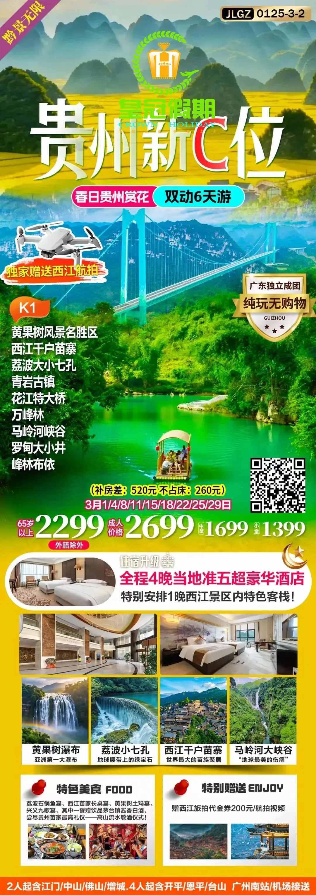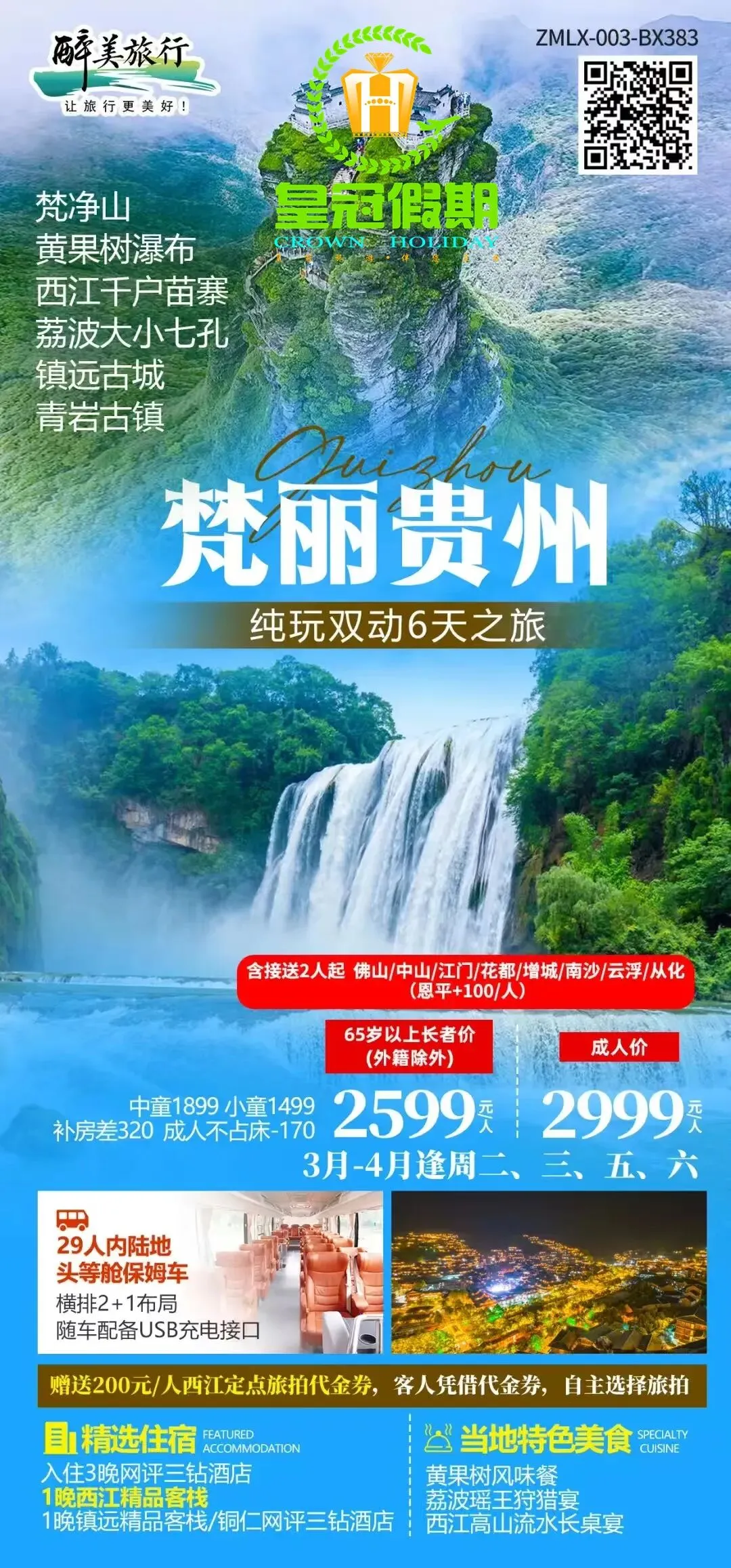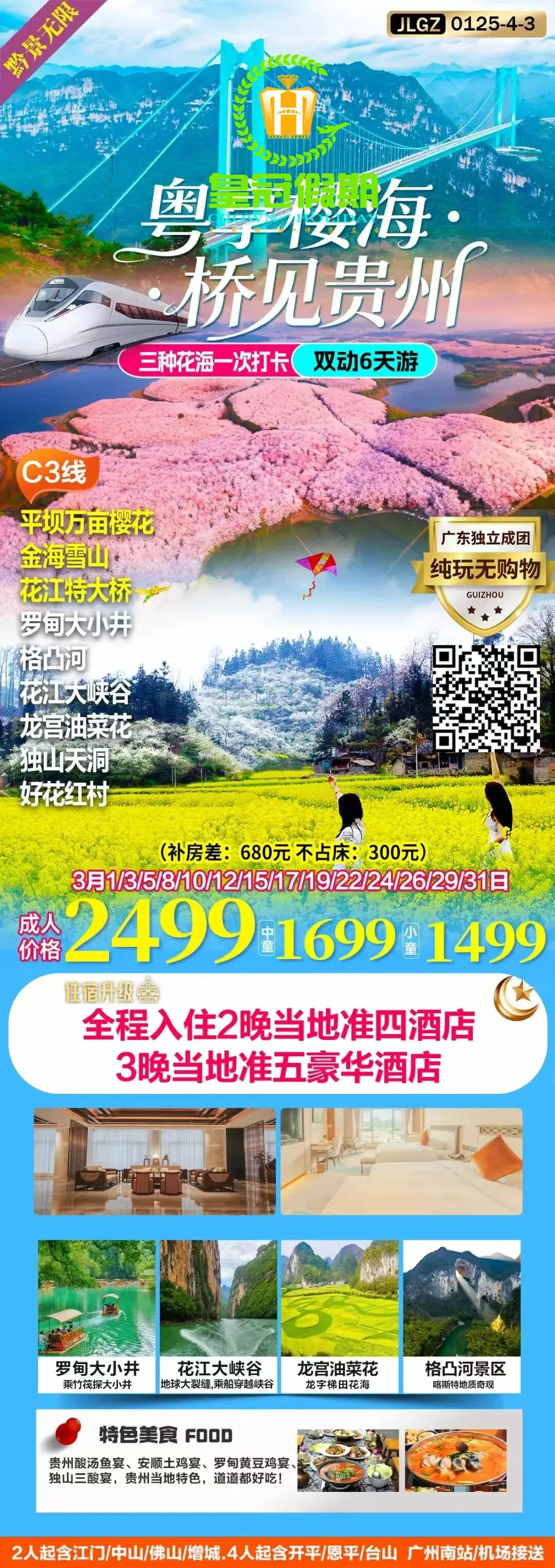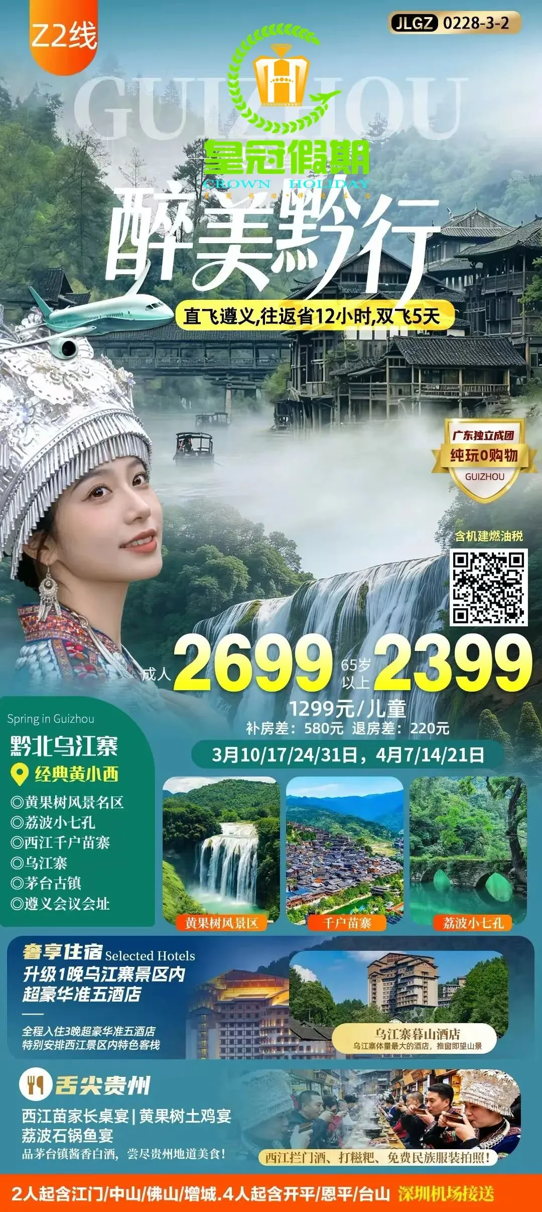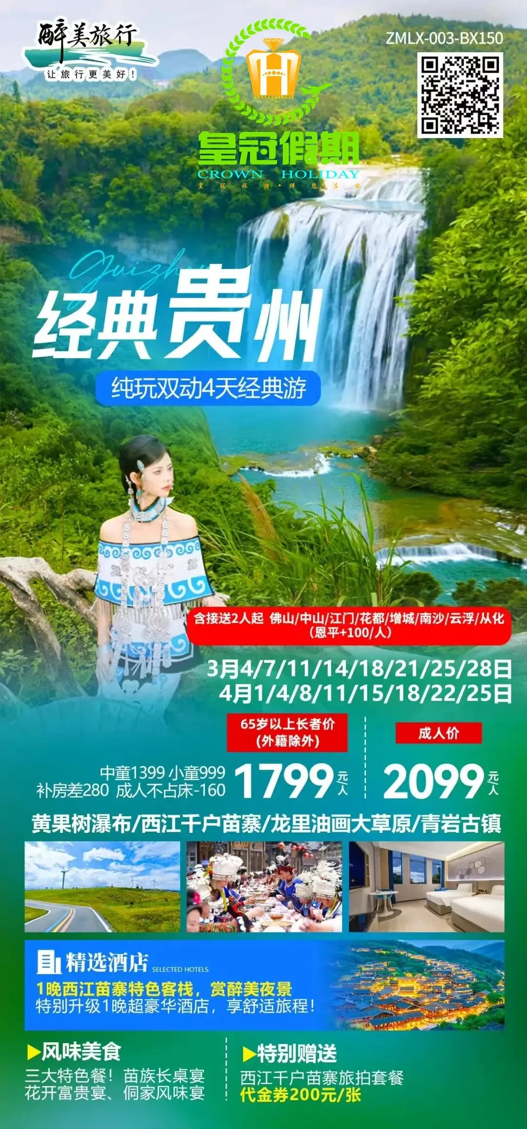 【3-4月】贵州旅游线路~点击蓝字关注【佛山皇冠假期】