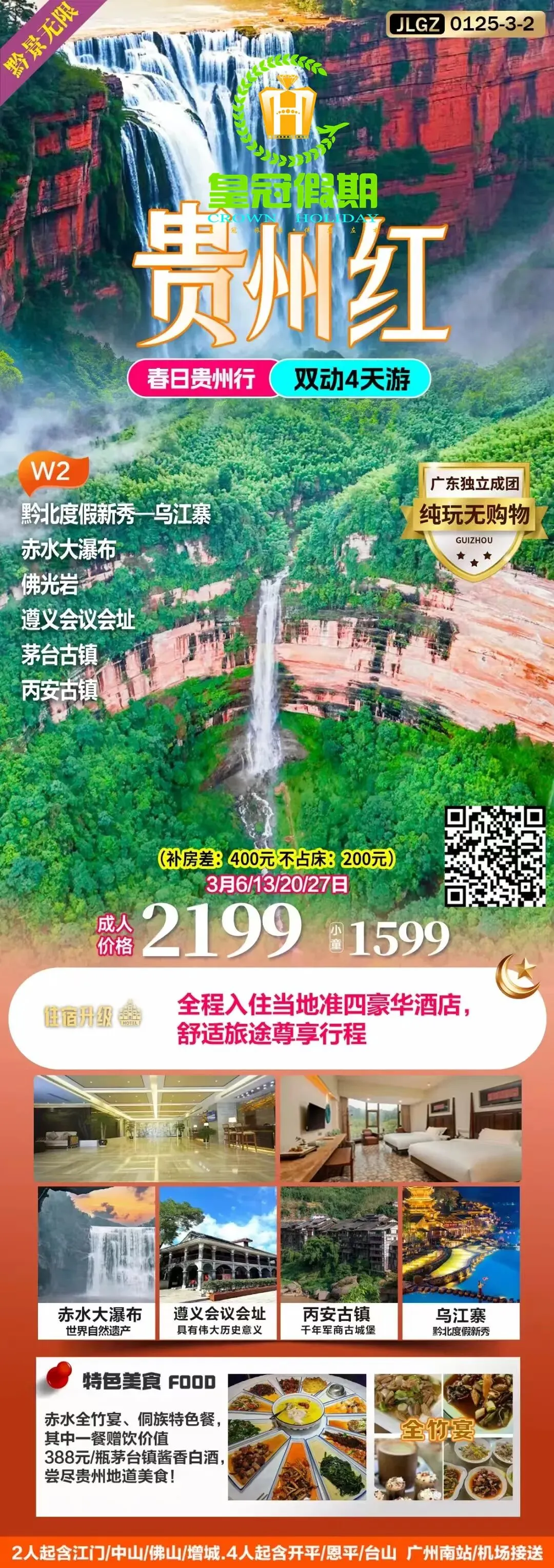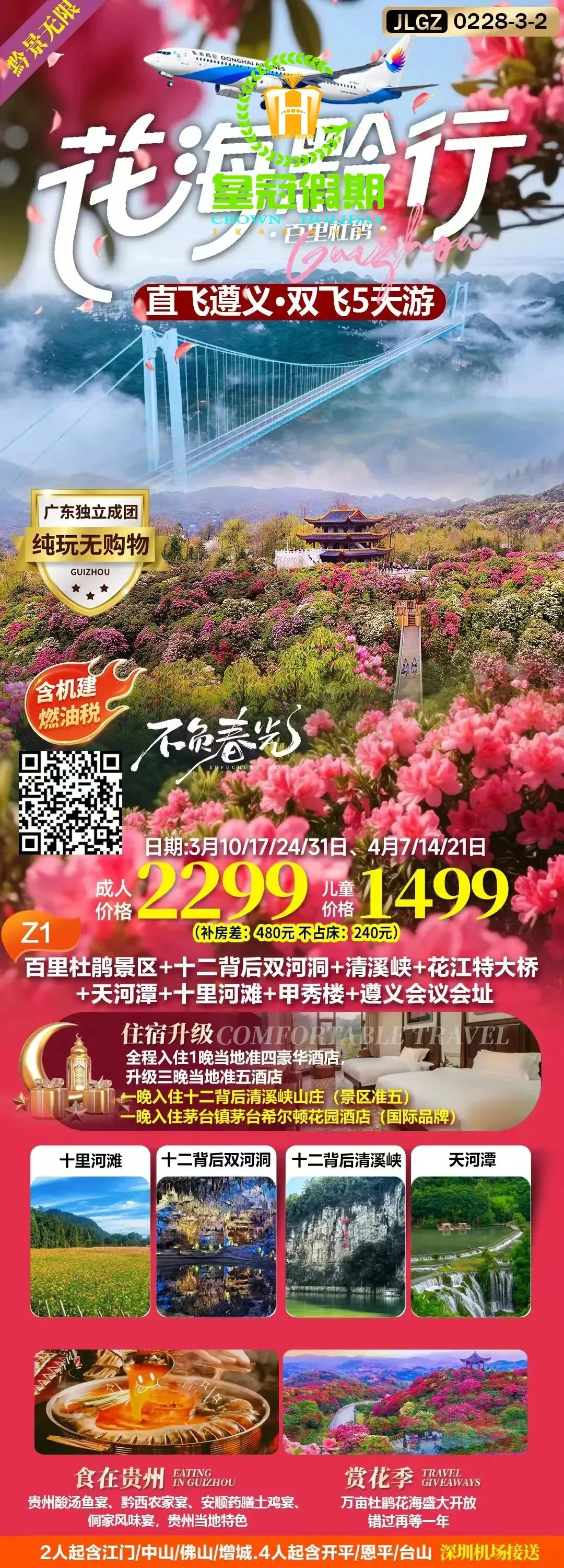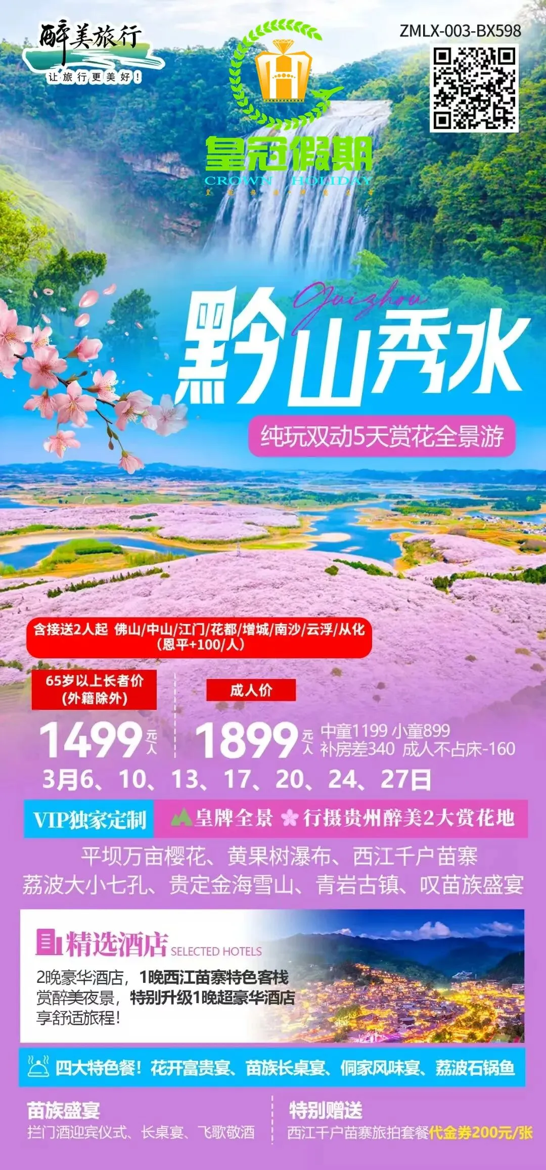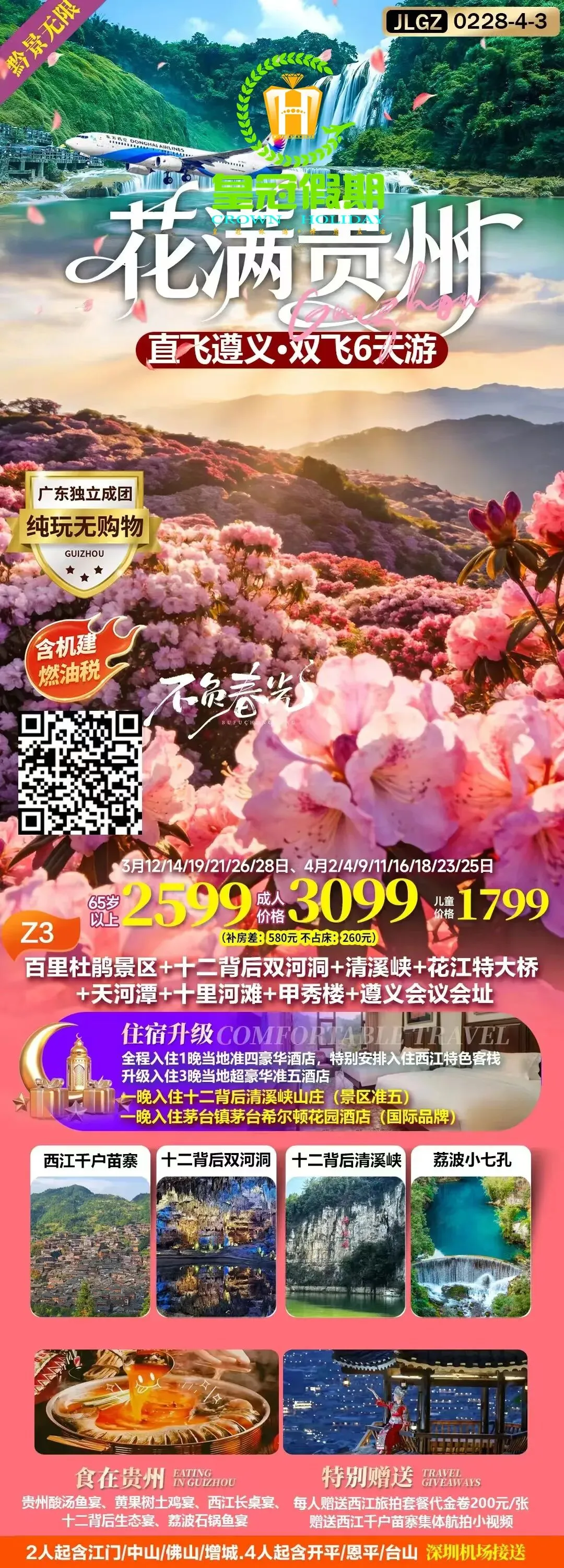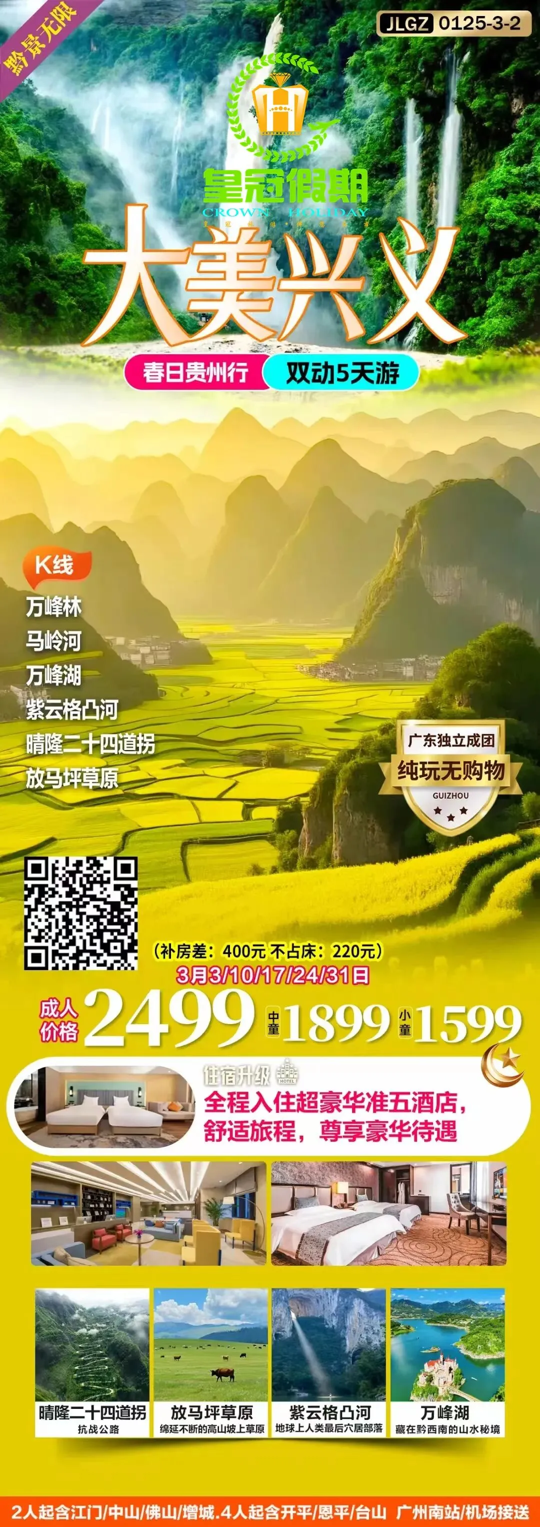 【3-4月】贵州旅游线路~点击蓝字关注【佛山皇冠假期】