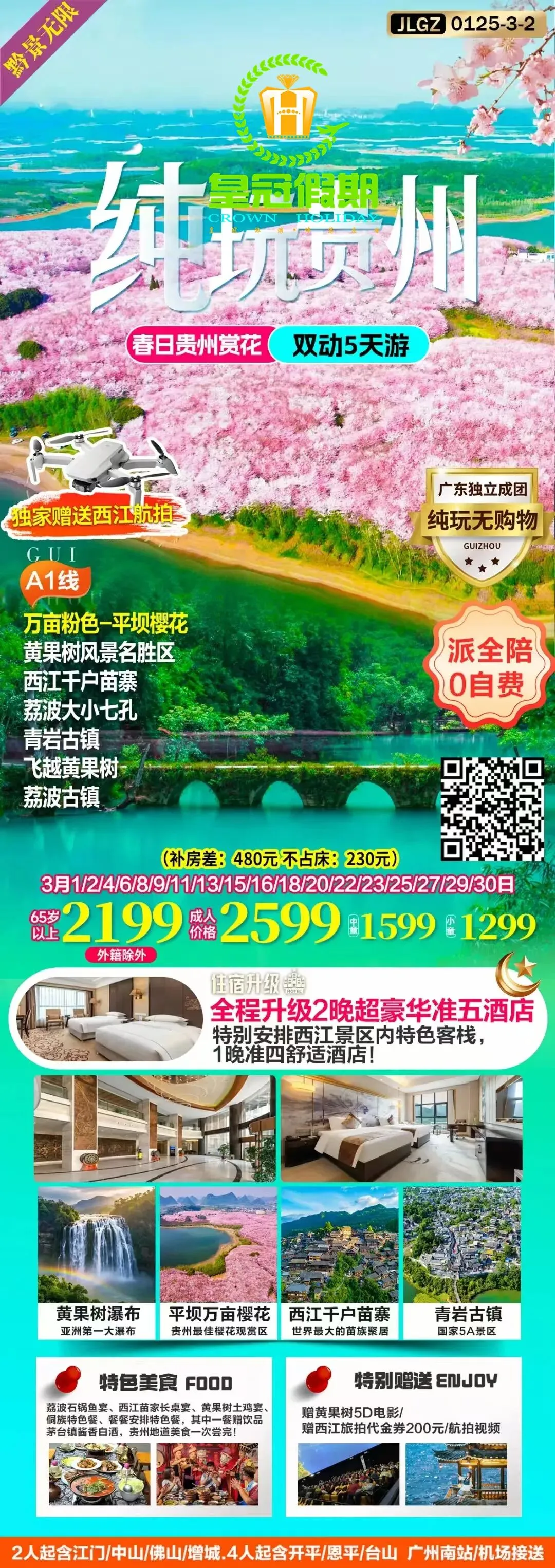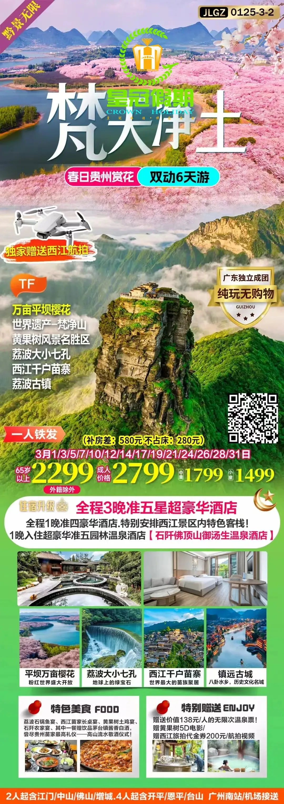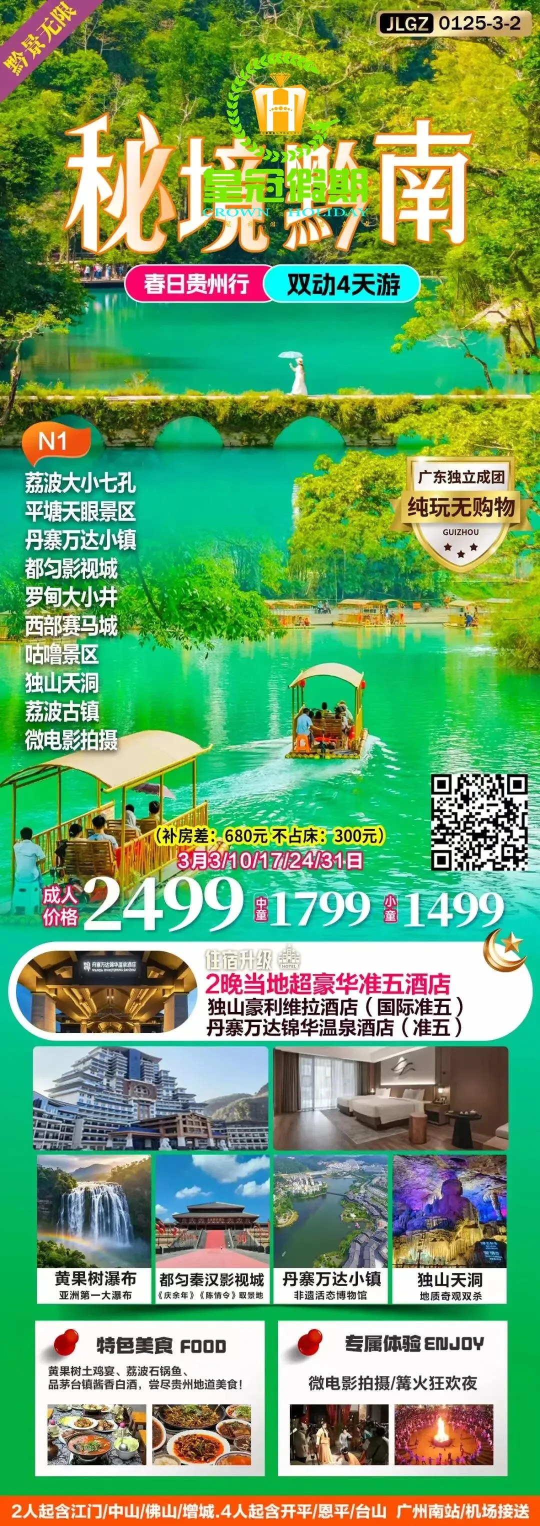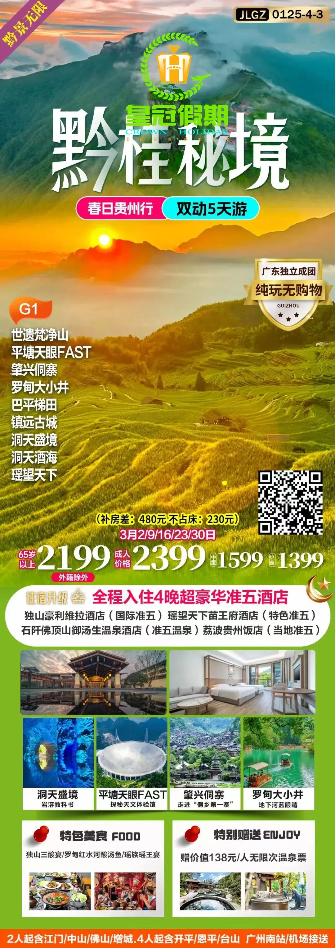 【3-4月】贵州旅游线路~点击蓝字关注【佛山皇冠假期】