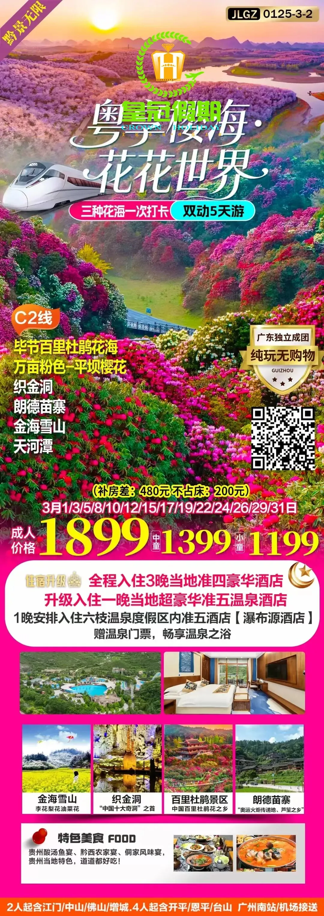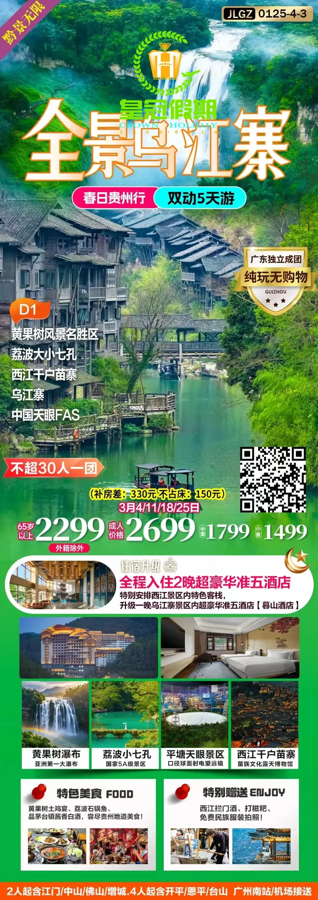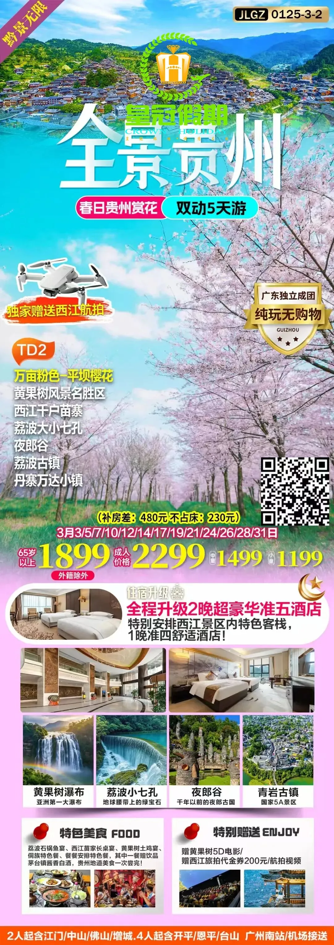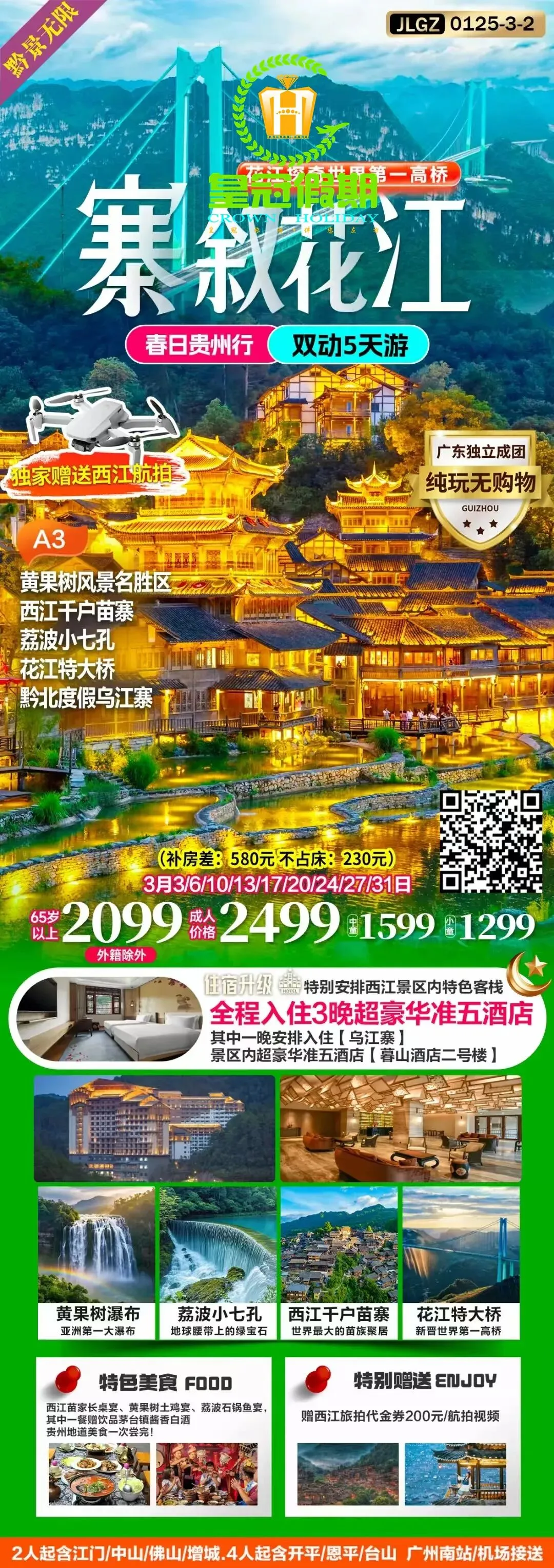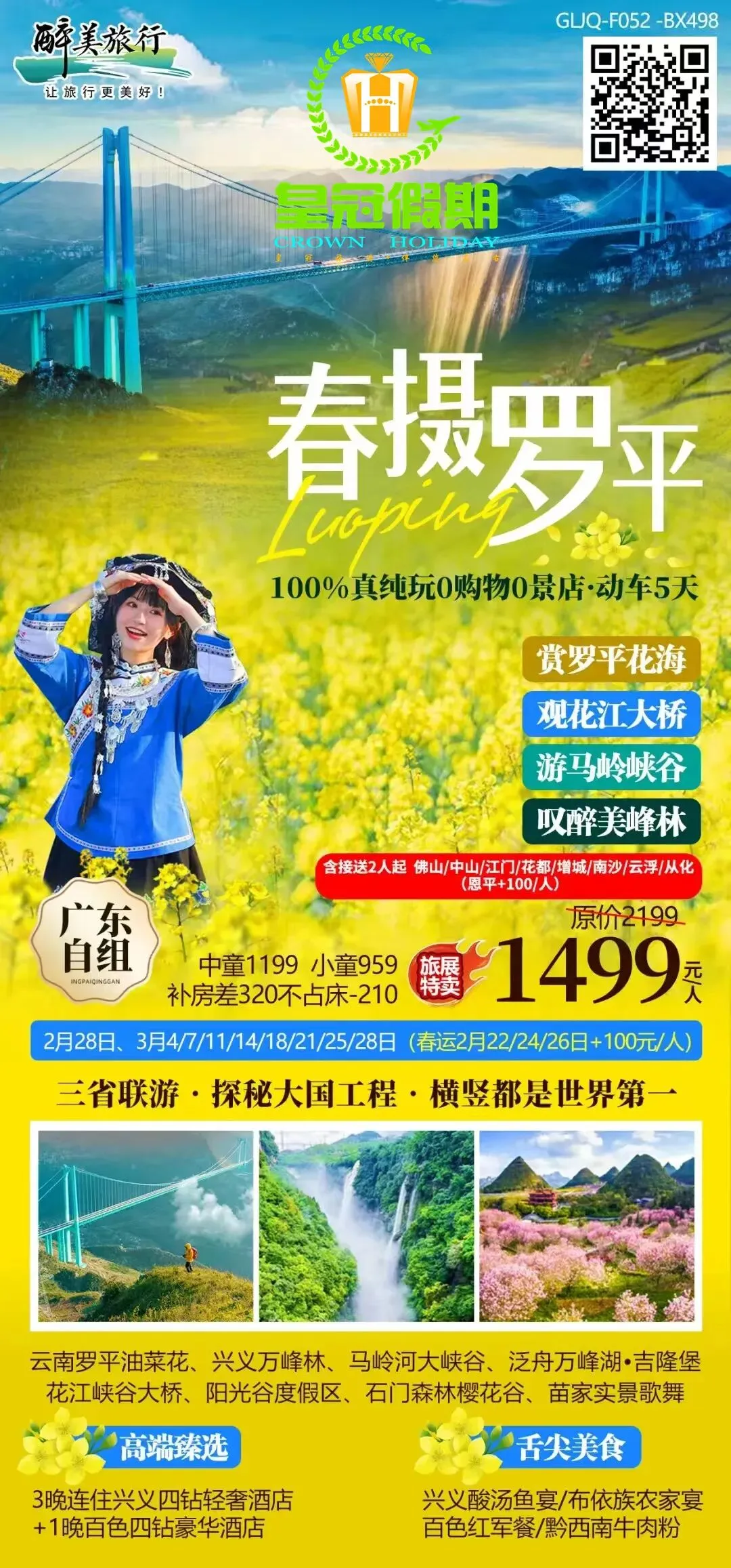 【3-4月】贵州旅游线路~点击蓝字关注【佛山皇冠假期】
