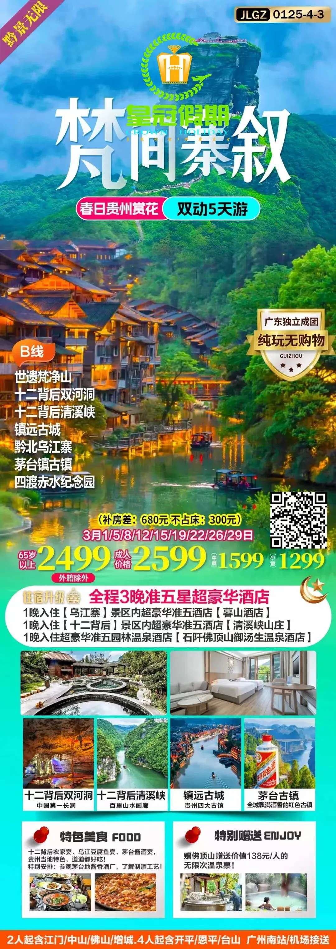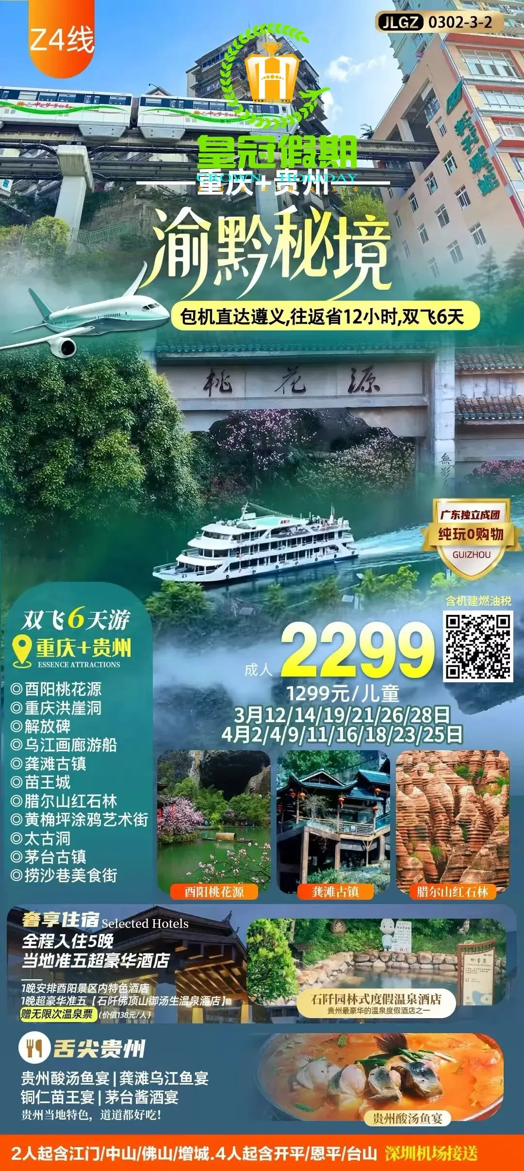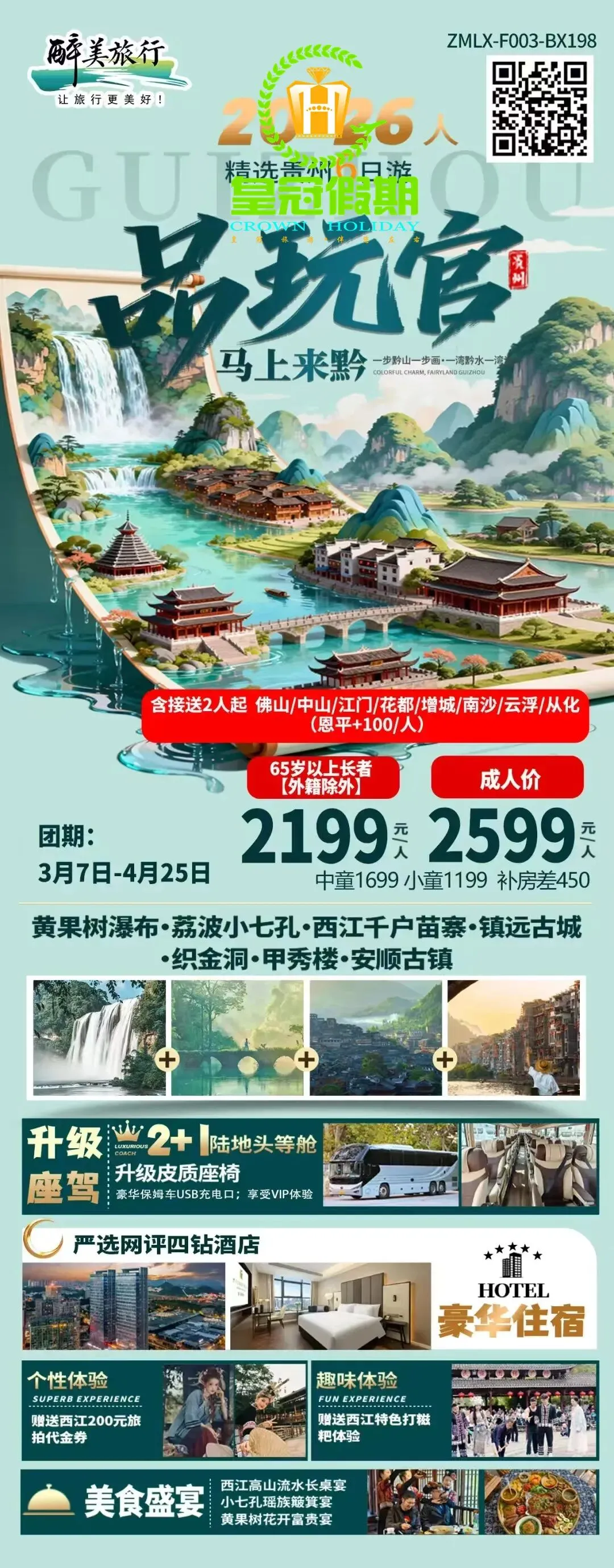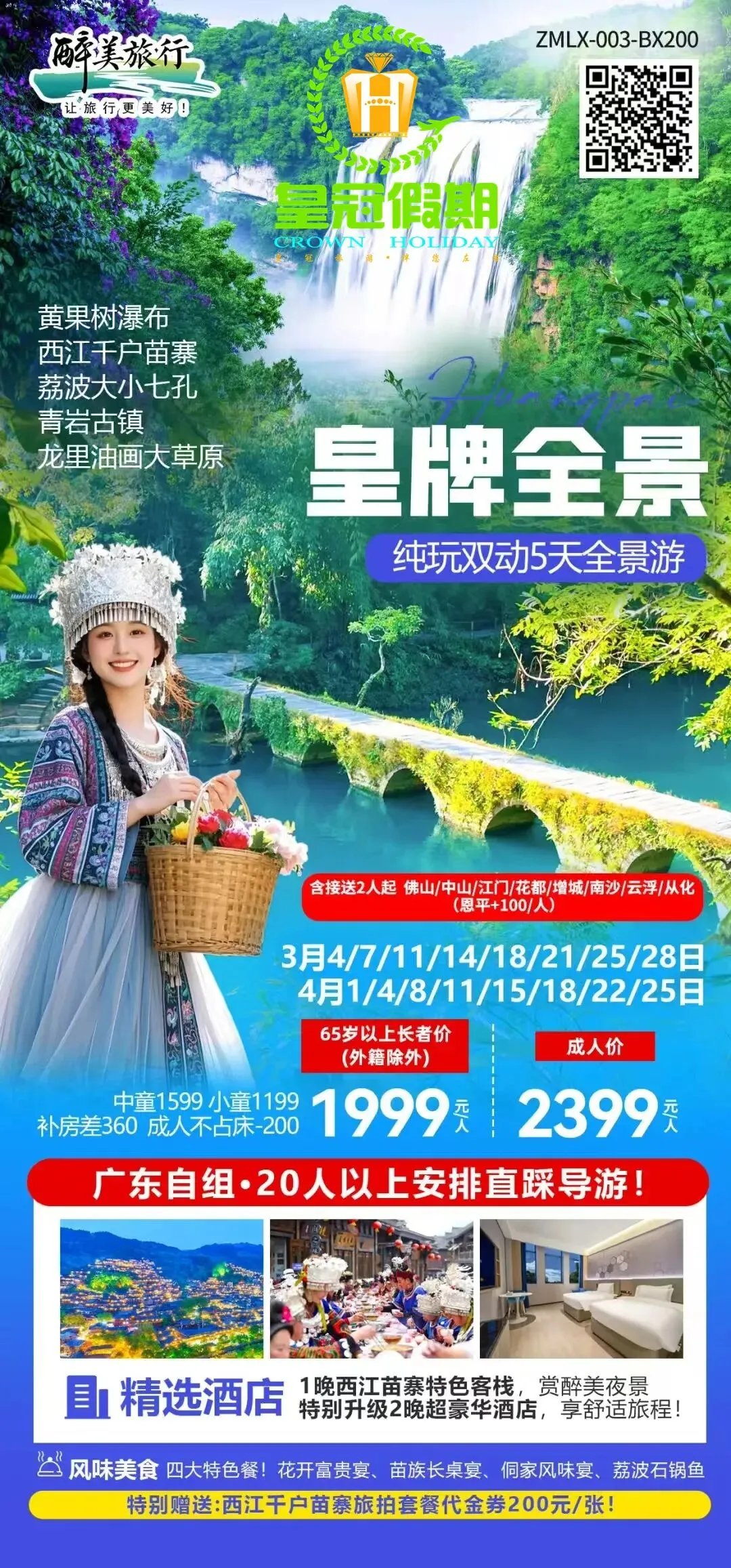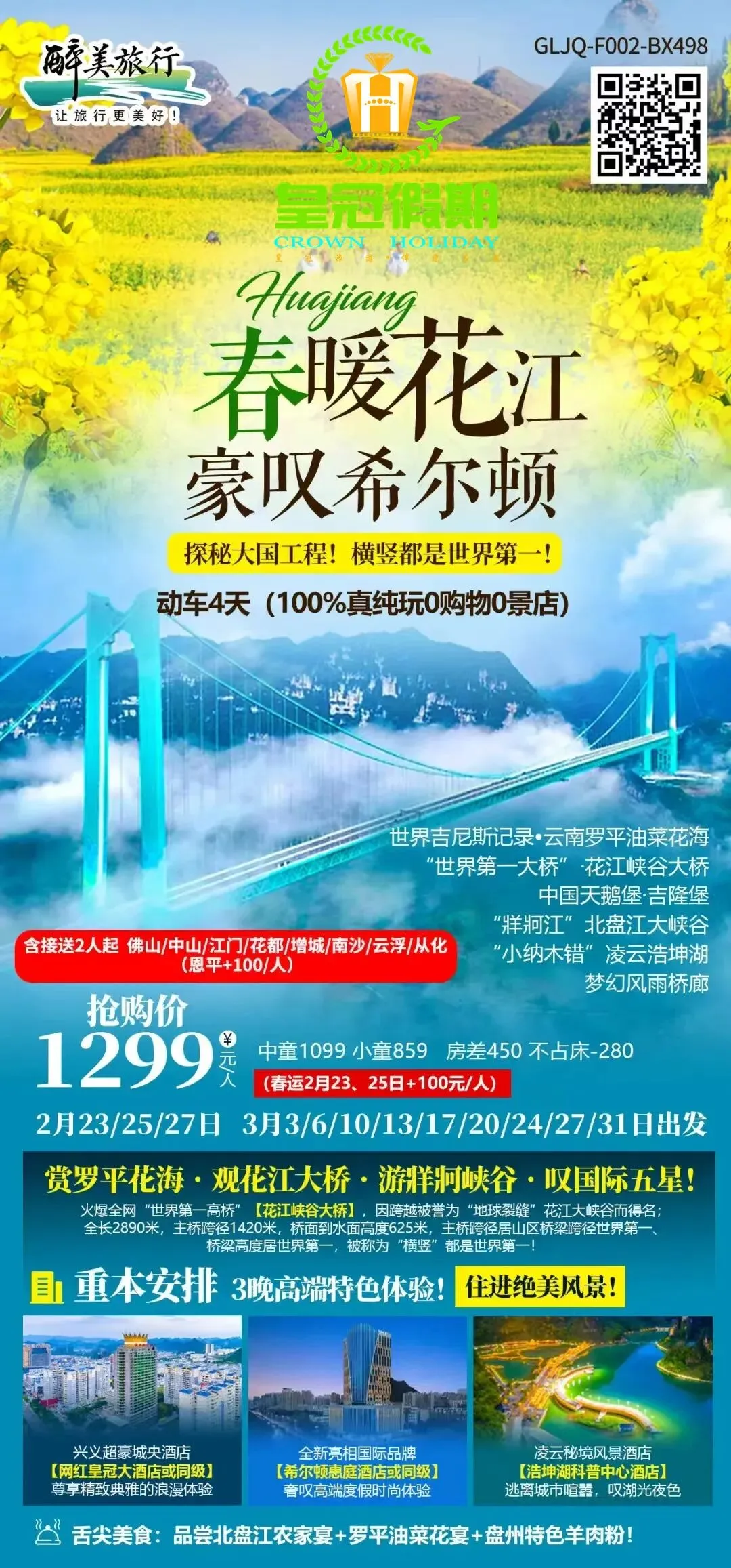 【3-4月】贵州旅游线路~点击蓝字关注【佛山皇冠假期】