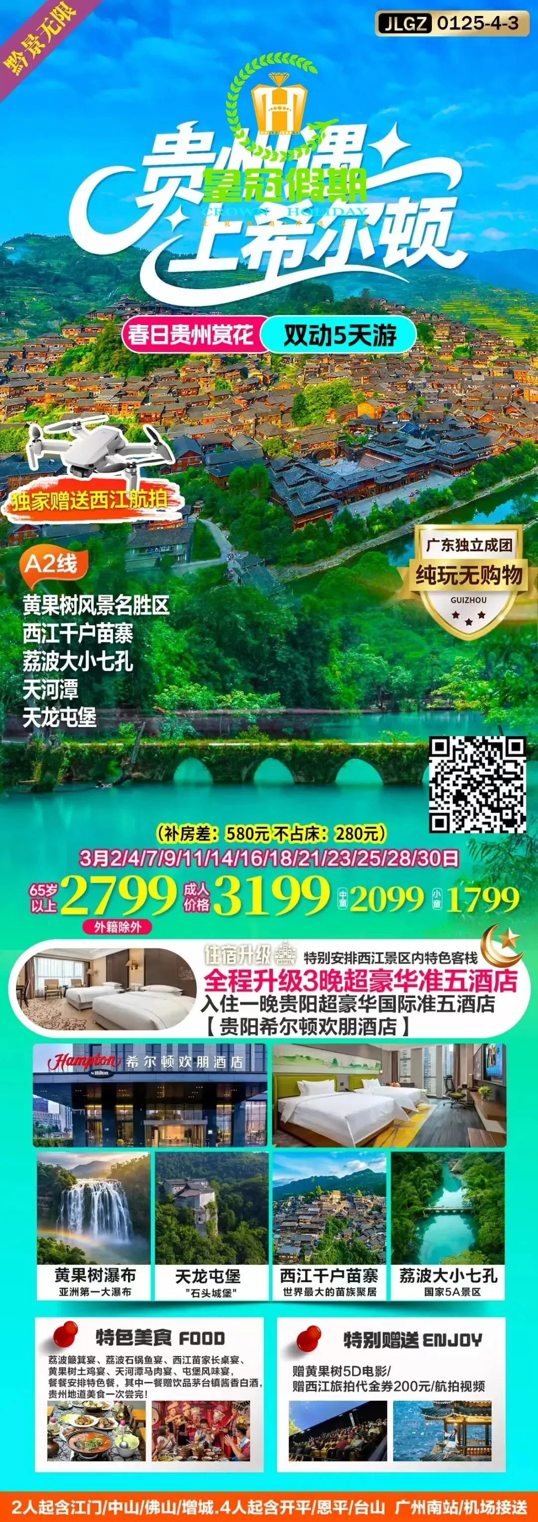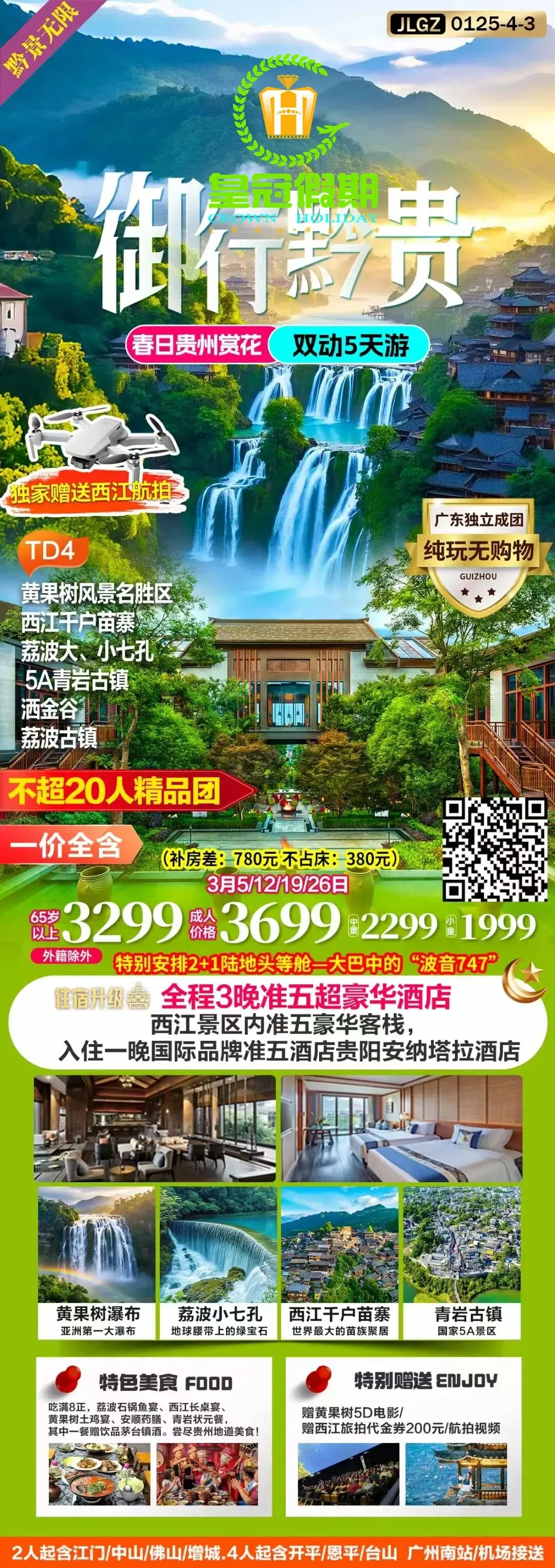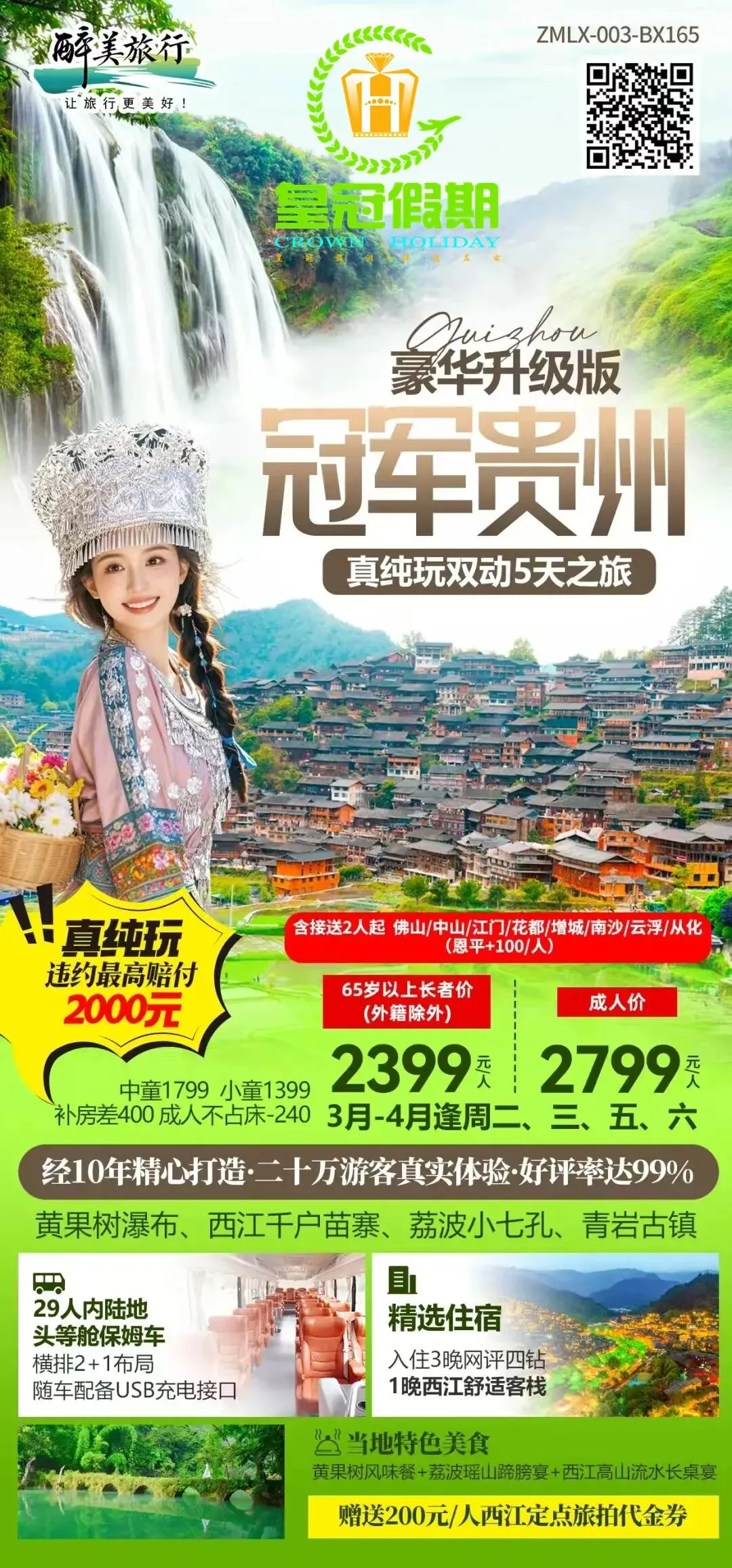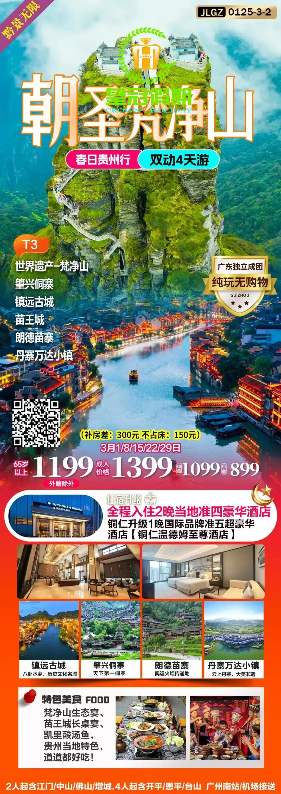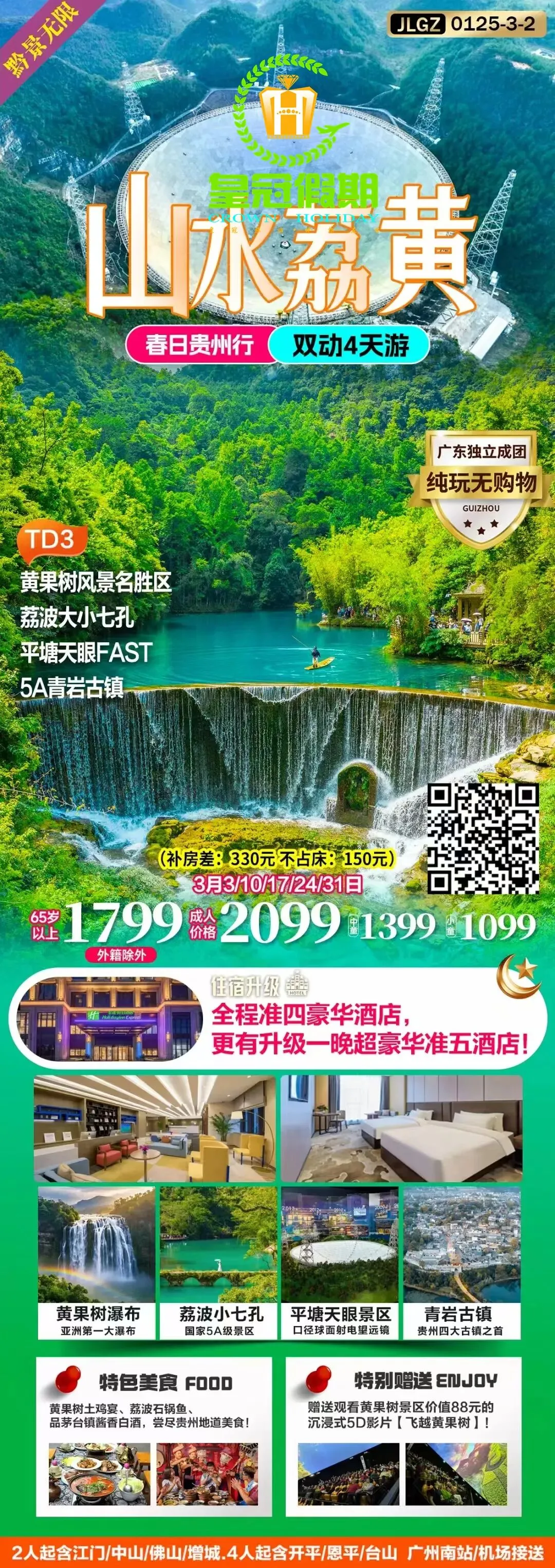 【3-4月】贵州旅游线路~点击蓝字关注【佛山皇冠假期】