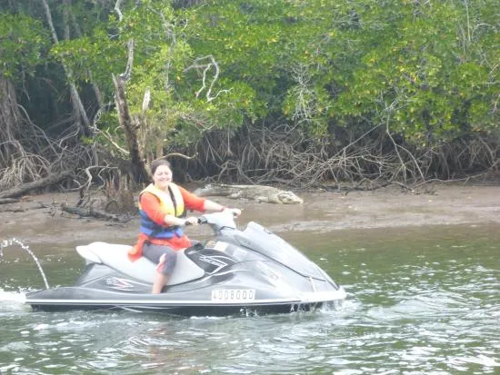 但请问鳄鱼会给你时间跳回摩托艇上吗?