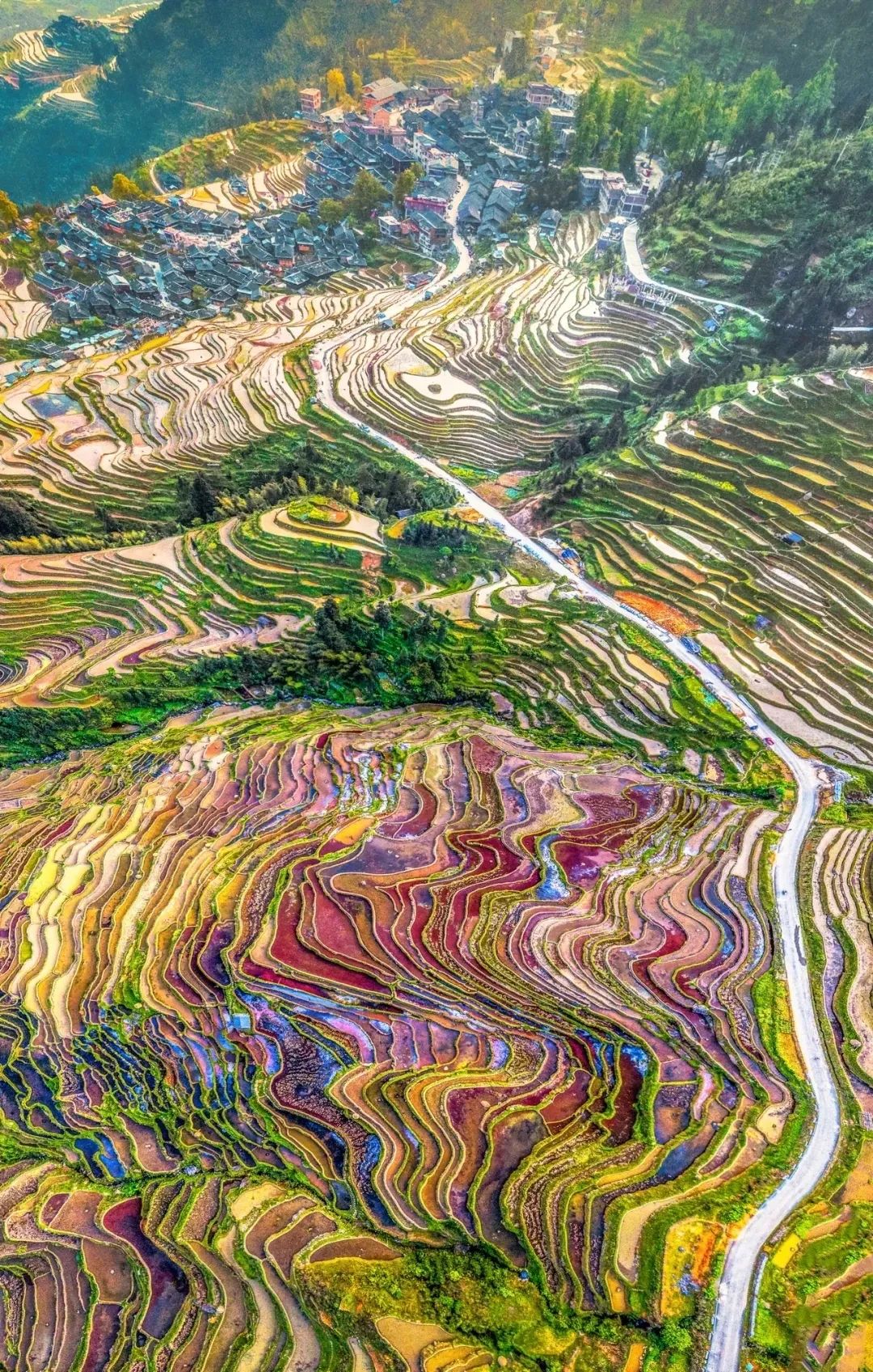 加榜梯田,位于贵州省黔东南苗族侗族自治州从江县西部月亮山腹地的加榜乡东北面,距县城80公里,是中国最好梯田之一。梯田中散落着苗乡特有的吊脚楼。是苗族人世世代代留下的杰作。苗族是“稻饭鱼羹”的民族。
