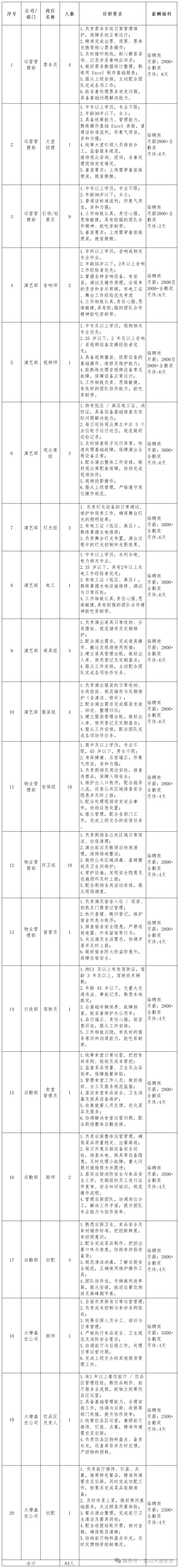 【国企】招64人!贵州省雷山县大塘文化旅游发展有限公司《仰欧桑》剧场2026年人员招聘简章,报名时间:招满截止
