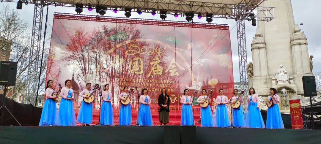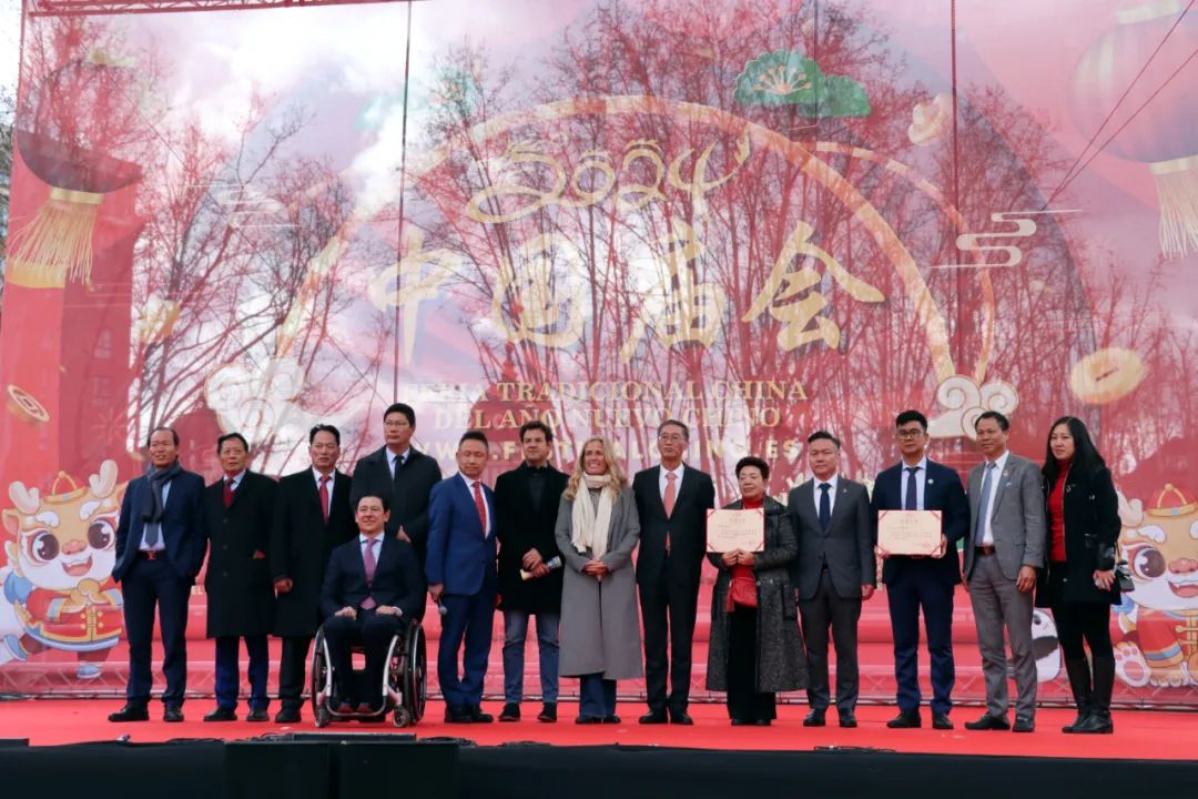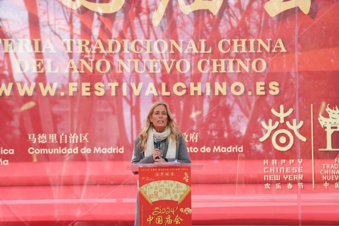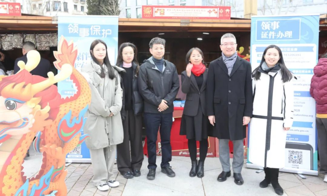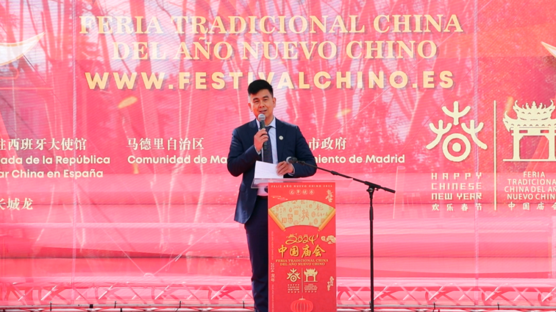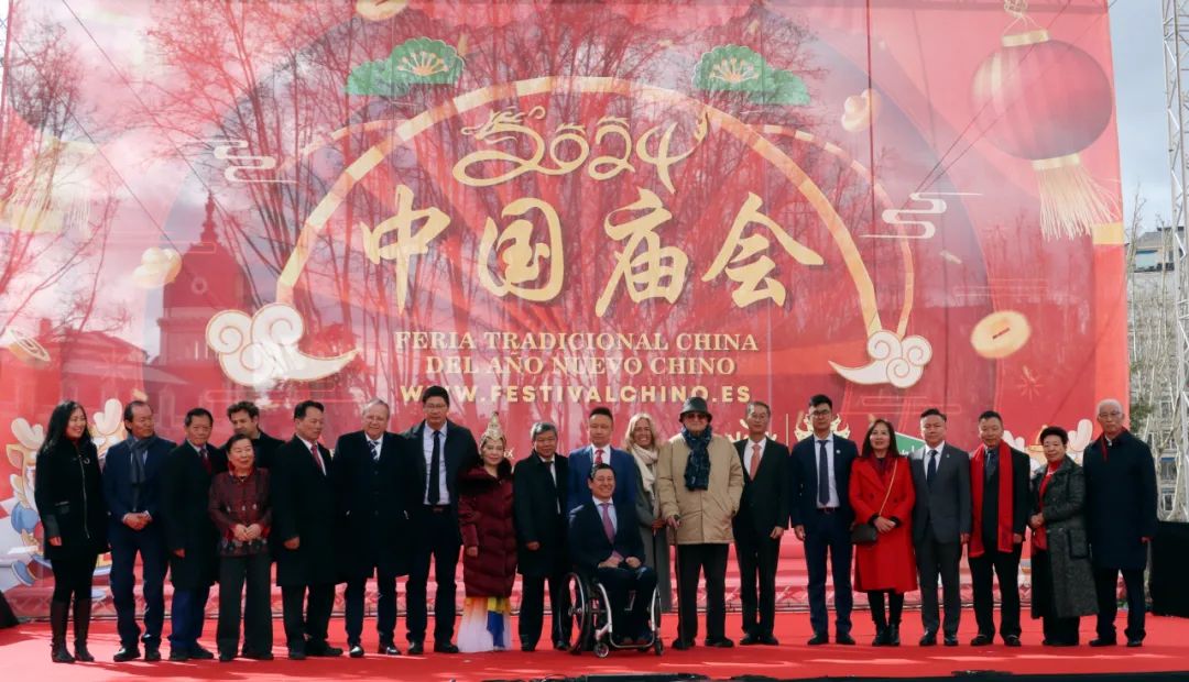 2024年2月24日,由中国驻西班牙大使馆、马德里大区政府、马德里市政府主办,西班牙侨界承办的 2024年龙年“欢乐春节·中国庙会”活动在马德里西班牙广场正式拉开了帷幕。中国驻西班牙大使馆的姚敬大使等使馆官员,马德里大区经济、财政和就业部部长 Rocío Albert López 女士、马德里Moncloa-Aravaca区长Borja Fanjul Fernandez-pita先生、四川省中华文化学院的常务副院长万群、各侨团以及社会各界人士参与了此次活动。同时,在中国驻西班牙大使馆的关心和指导下,在浙江省侨办侨联的统筹下,“浙里有爱·龙的传人迎龙年”发放春节礼品活动也在开幕式当天对旅西侨胞和西班牙当地民众发放,礼品包括对联、龙年挂件、红色围巾、灯笼和一封家书等,拉高了众多当地民众对此次庙会的认可值更上一层楼。
