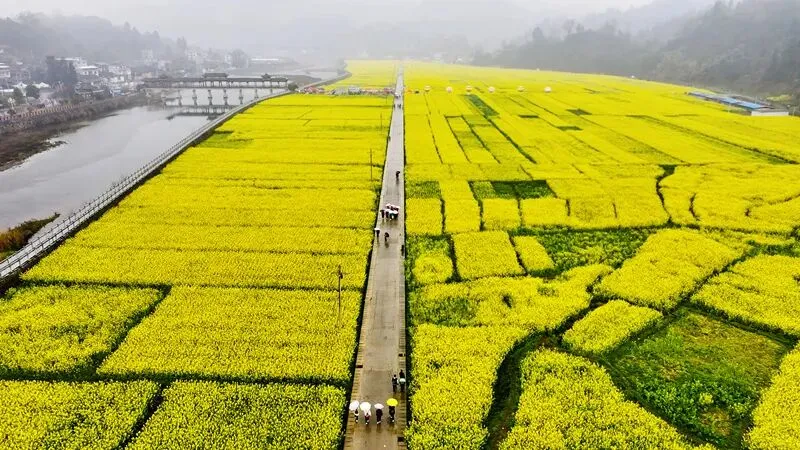 雨润花海,香漫瓦屋。3月7日,碧江区第十届“和美瓦屋·共赏花海”油菜花观光旅游活动雨中启幕。瓦屋乡万亩油菜花海沐雨盛放,一场融合生态之美、民俗之韵、乡村之趣的农文旅盛宴就此展开。