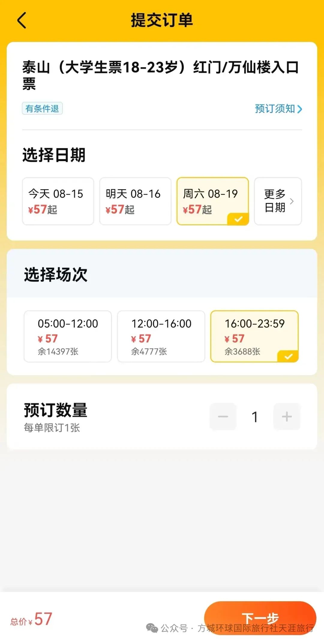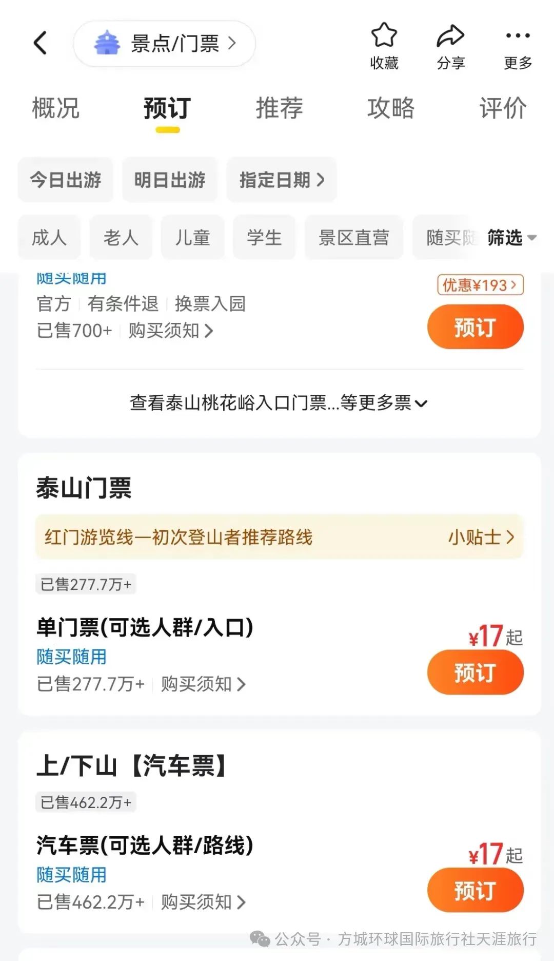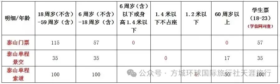 泰山景区门票:(可在泰山公众号预定)客人自行预订。
