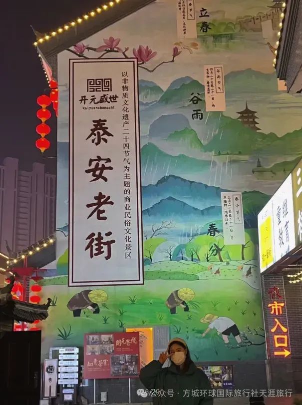 在“泰安老街”,既有传统的泰山元素,也创造性地以“二十四节气”统领“老街”设计建造,建筑街区以二十四节气命名,景观区铺装根据节气变换,打造古朴的节气景观氛围。