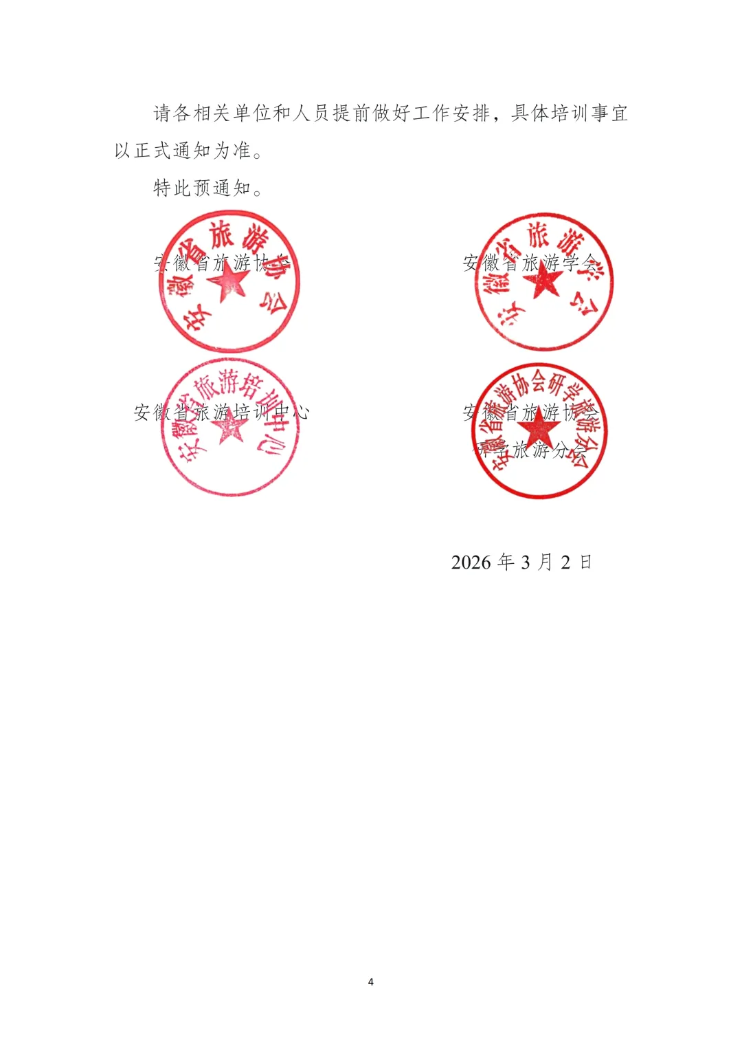 2026年安徽省研学旅游指导师培训班,预报名正式开启由安徽省旅游学会、安徽省旅游培训中心、安徽省旅游协会、安徽省旅游协会研学旅游分会联合举办的2026年安徽省研学旅游指导师培训班,预报名正式开启! 01#为什么这次培训值得你来? 顺利完成课程并通过考核,你将获得由安徽省旅游培训中心、安徽省旅游学会、安徽省旅游协会三方联合颁发的证书。这不仅是一份证明,更是你专业能力的行业名片。 📚课程不枯燥,全是"干货" 我们拒绝纸上谈兵!4天课程涵盖:政策解读——把握行业风向标;课程设计——教你设计出学校买单、孩子喜欢的研学产品;安全管理——研学旅游中最重要的一环,预案怎么做;心理分析——面对不同年龄段的孩子,如何因材施教;带团技巧——国赛级标准服务流程的灵活运用。特别设置:结合培训地周边研学基地,开展沉浸式现场教学,让你亲眼看到、亲身体验什么是一堂好课。 👥实战派导师 + 高质量圈层 与来自全省研学基地、旅游企业的精英同窗,4天同吃、同住、同学习,不仅是拿证,更是拓展你在研学圈的人脉资源。 02#培训基本信息