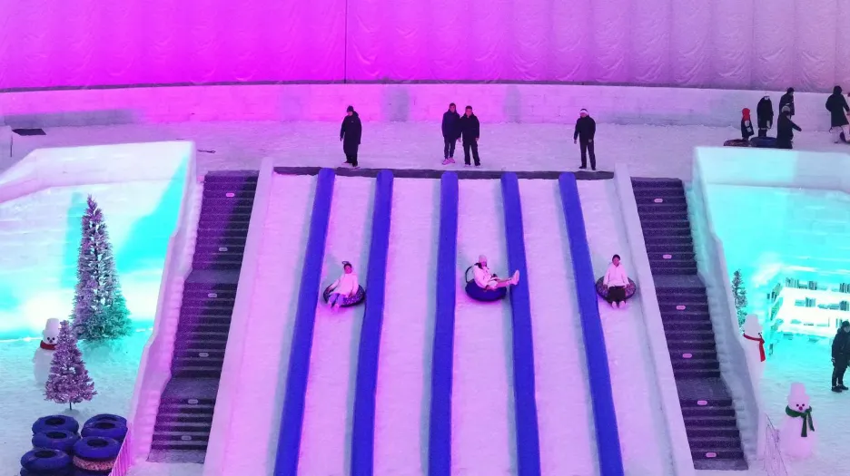 游客在景区体验冰雪项目。