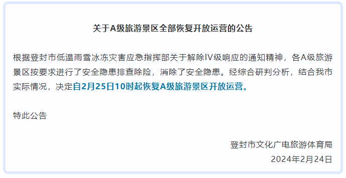◆ 关于A级旅游景区全部恢复开放运营的公告