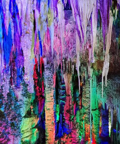 龙宫仙境是个水溶洞,但它跟普通溶洞不一样的地方在于,你得先坐船进去,进去之后发现洞里有地下河,河两边是各种石钟乳和石笋,灯光打得不算夸张,没有那种五颜六色的俗气,就是让你看清楚这些石头长成什么样。最特别的是洞里的回声,说话声会在洞壁之间反复弹,但又不吵,那种感觉就像是这个洞在回应你,你说一句,它用好几个不同的音调给你回一遍,待久了会有点恍惚,不知道自己是在地下还是在哪。