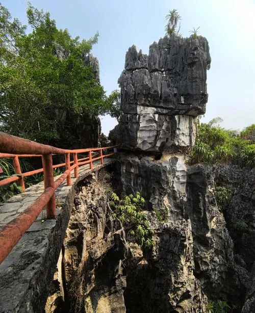 石景林就是一片喀斯特石林,但它跟云南石林不一样,崇左这个更野,没那么多人工修饰,石头就那么长着,有些能有十几米高,形状千奇百怪,你走在里面,感觉像是进了个石头迷宫,拐个弯,又是一块巨石,再拐个弯,石头缝里又能钻出一条小路。2-3月植被好,石头缝里都长着绿色的苔藓和小灌木,那种感觉就是,这些石头不是死的,它们在这个环境里也是活的,也在跟植物、跟雨水、跟时间较劲,你看着那些被风化出来的纹路,就知道这个较劲已经进行了不知道多少万年。