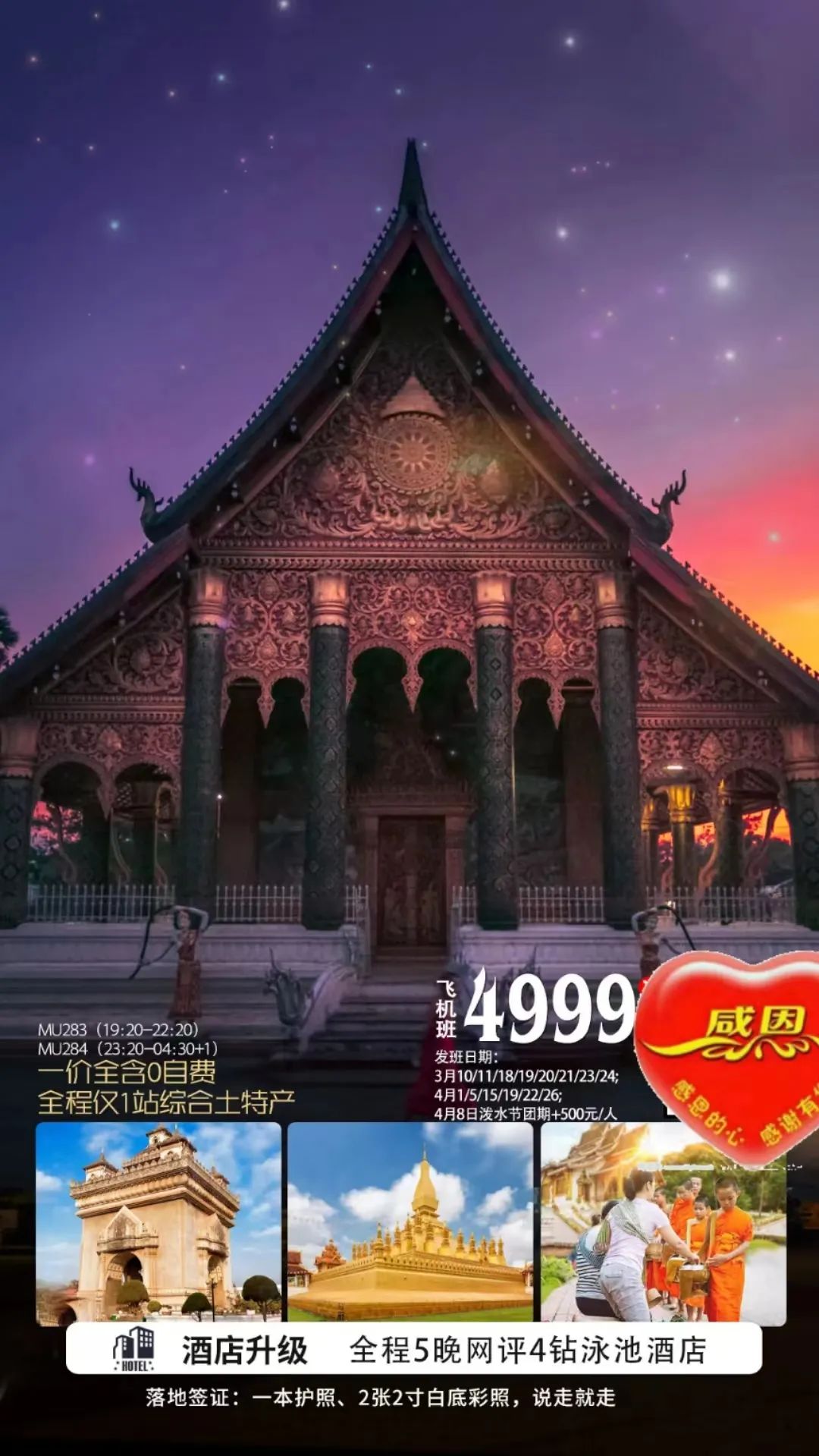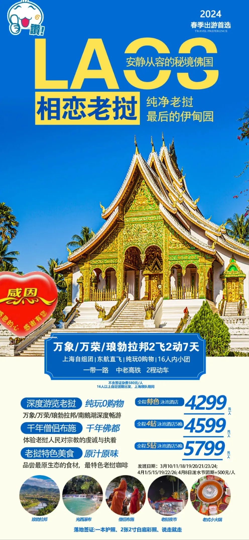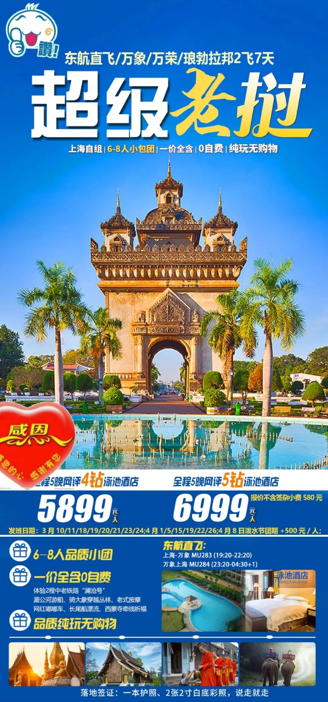 4、【相恋老挝.纯玩.上海自组.8-16人小团】上海东航直飞老挝+全程5晚泳池酒店+万荣+万象+琅勃拉邦2飞7天 4299起 <<<点击看详情 |