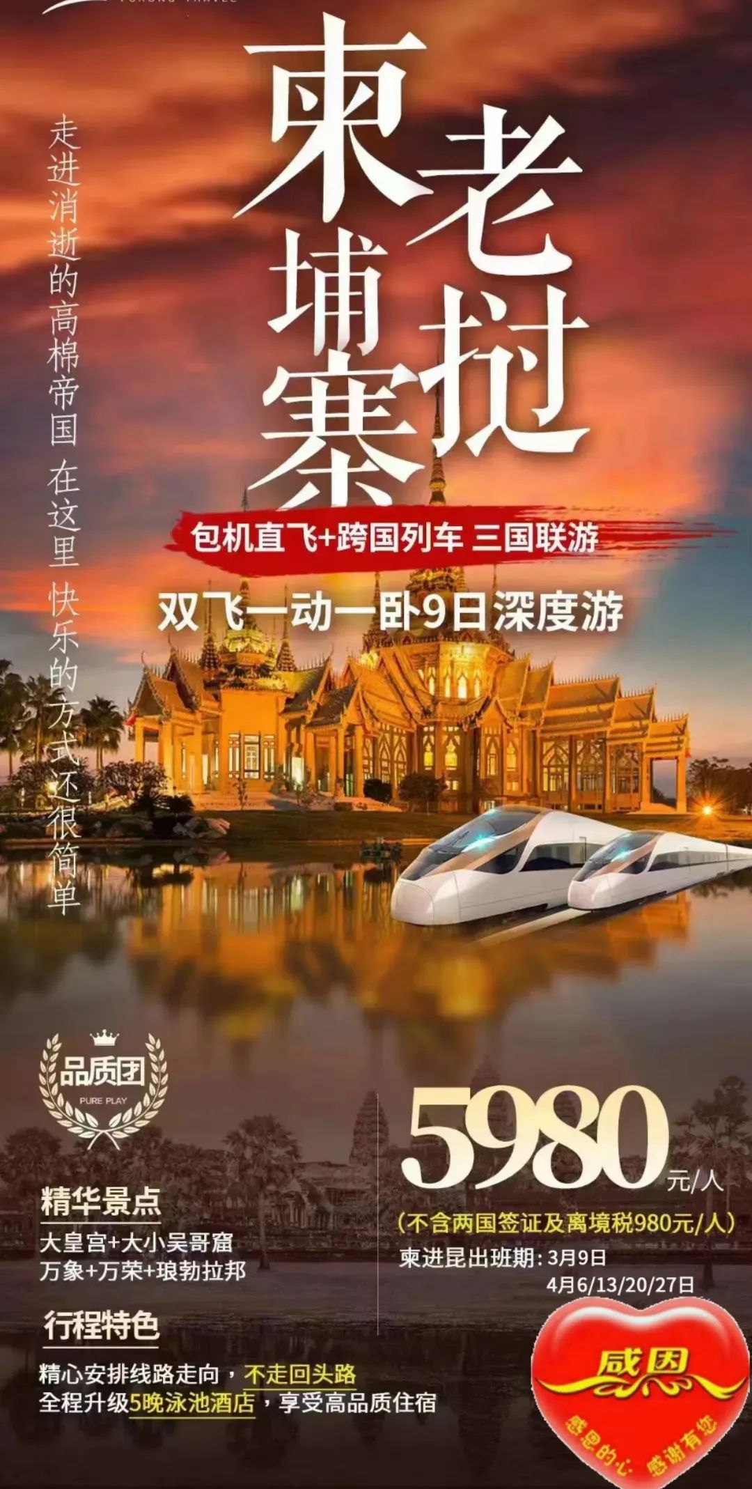 3、【包机直飞+跨国动车】【老挝+柬埔寨】双飞1动1卧9日深度游~柬埔寨进昆明出,不走回头路! <<<点击看详情 |