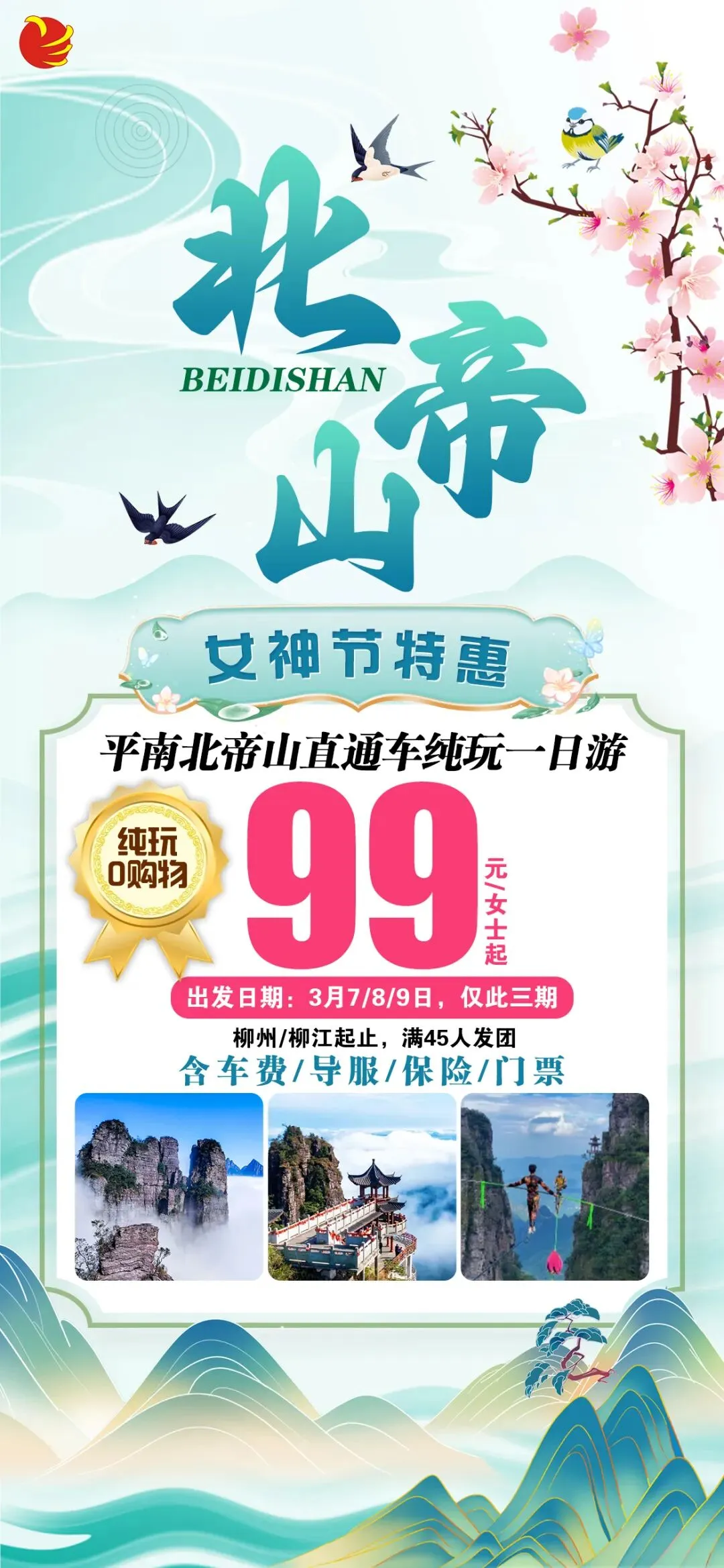 3月9日(已经成团,有位)平南北帝山纯玩1日游