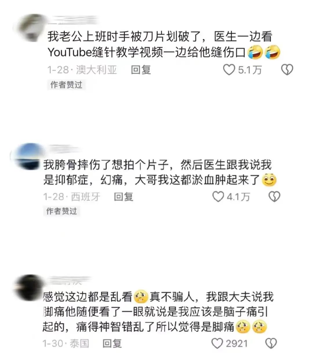 其次,医生水平参差不齐。普通人可以接触到的医生甚至可以在观看视频后现场学习如何缝合伤口。有的医生甚至会认为患者心理有问题,引起幻痛。事实上,他没有病。