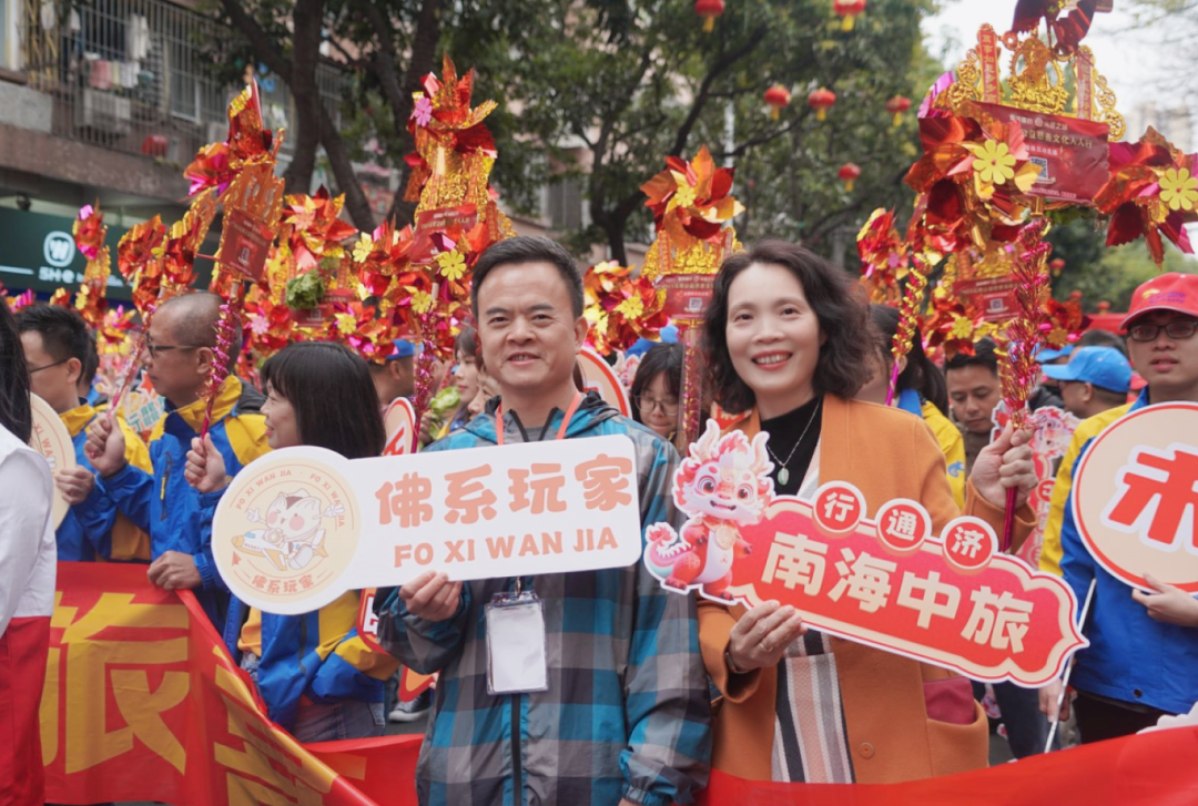 在本次活动上,佛山珠江传媒数字商务有限公司与佛山市旅行社协会、佛山口岸国旅共同组织策划,邀请了来自全国各地的100多位旅行社经营者组成“全国文旅方阵”参与巡游,体验佛山行通济民俗文化。