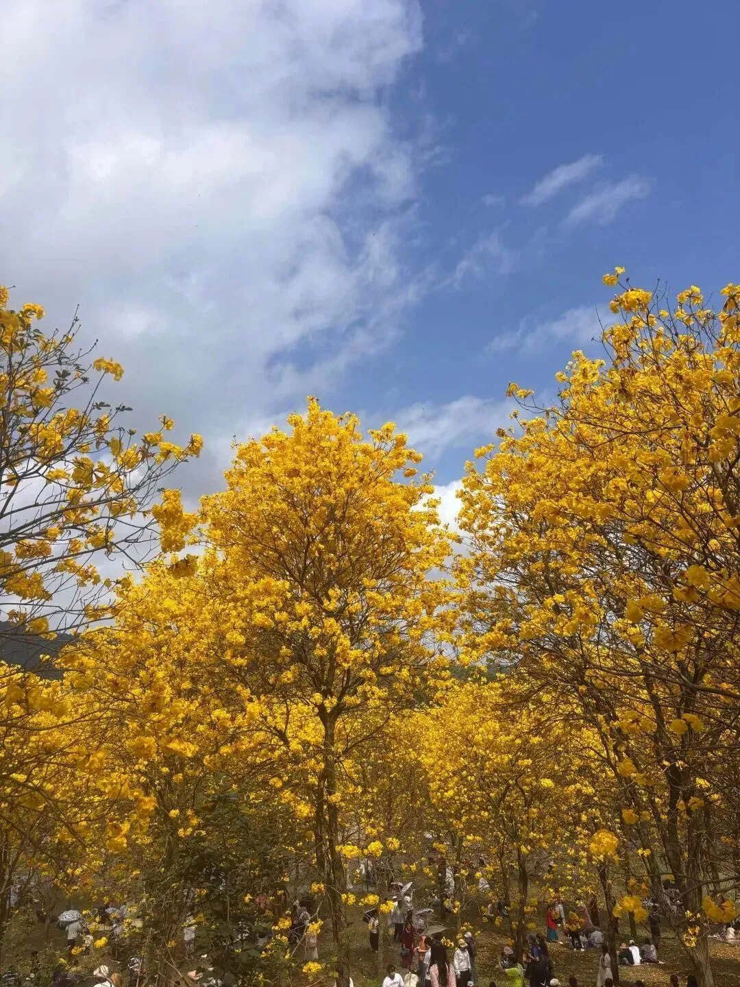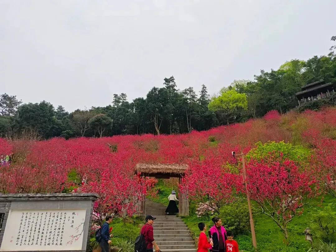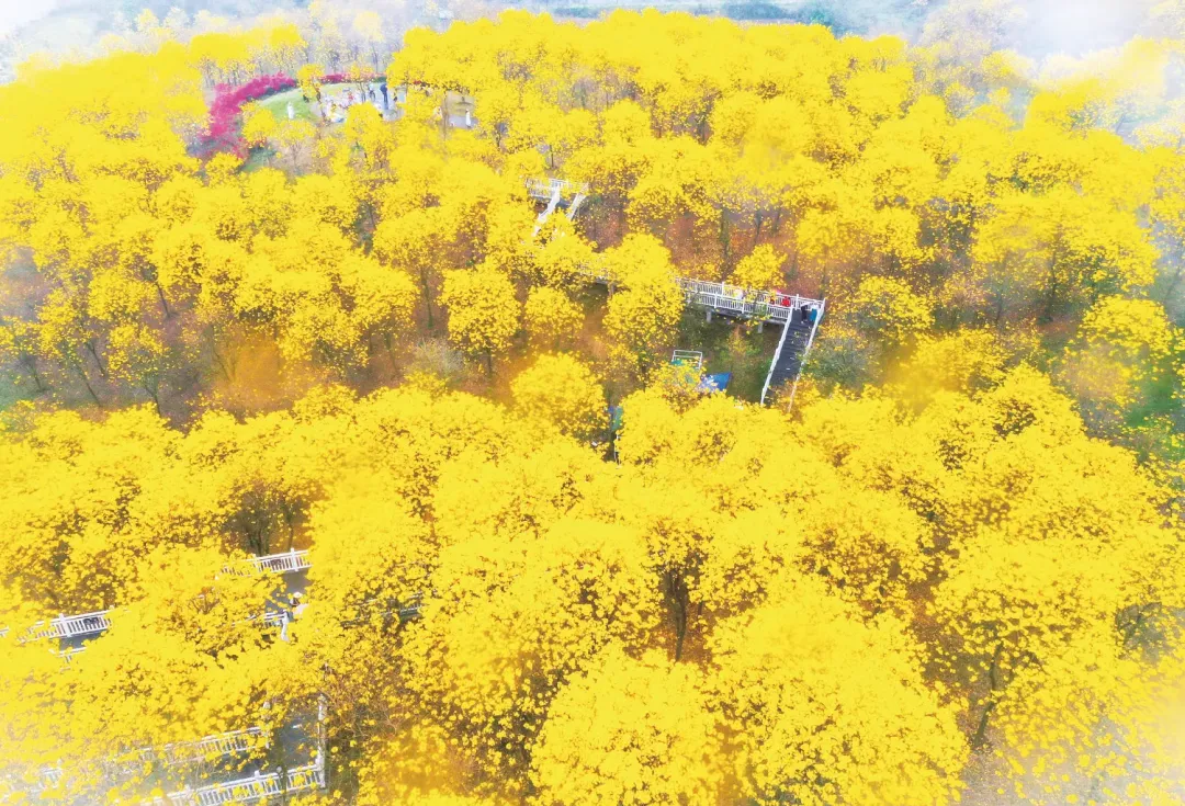 据悉,黄花风铃木、桃花、樱花等各类花卉正竞相盛放,景区进入了一年中最美的季节。