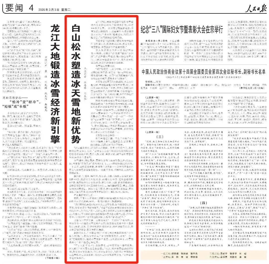 报道“十四五”期间,吉林省现代旅游业体系基本形成,冰雪经济成为吉林振兴亮点,为全面实现文化强省、旅游强省、冰雪强省建设奠定了坚实基础,同时,历史遗产焕发新彩,文旅发展提质增效。