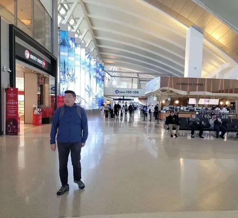 周先生5日在洛杉矶国际机场前往土耳其的航班所在的航站楼,候机厅旅客很少,显得冷清。(图/周氏夫妇提供)
