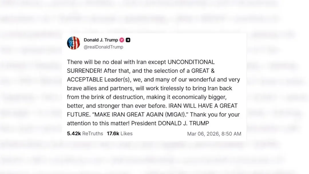总统川普周五发出最后通牒,明确表示除非伊朗“无条件投降”,否则美国绝不会与其达成任何结束战争的协议。