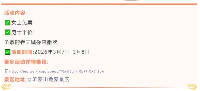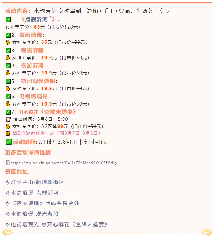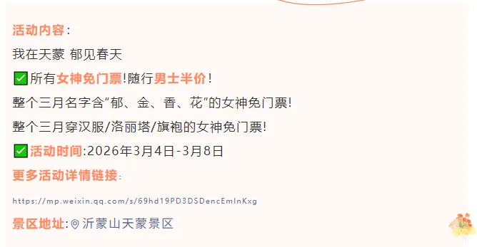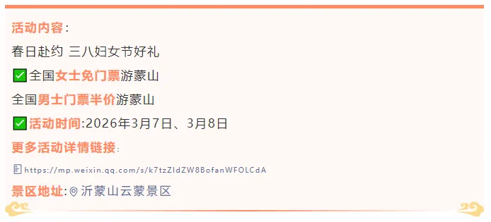 这个3.8女神节--临沂景区 免门票 、 特惠 全覆盖