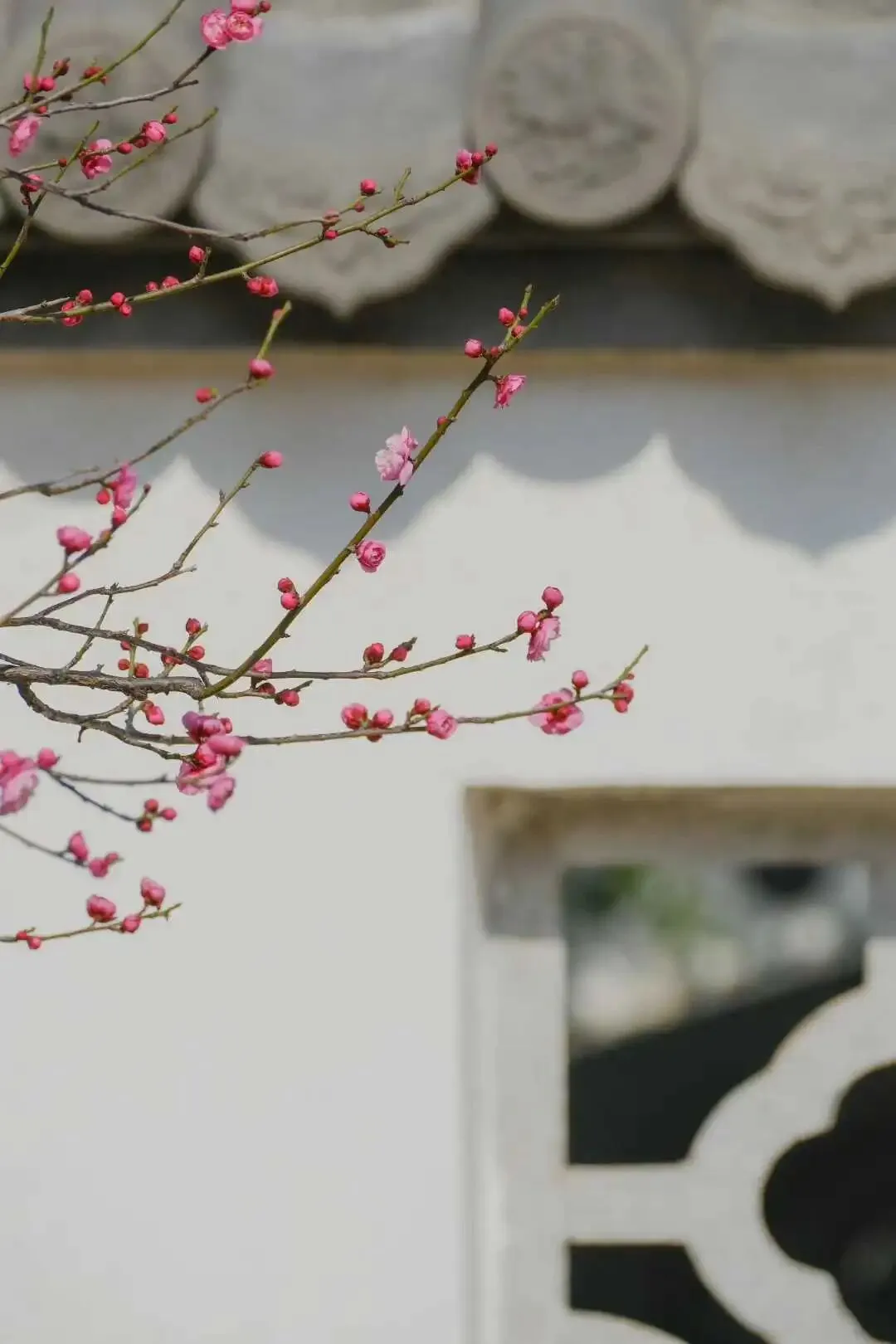 已有深粉的朱砂梅、浅绯的宫粉梅、月白的江梅