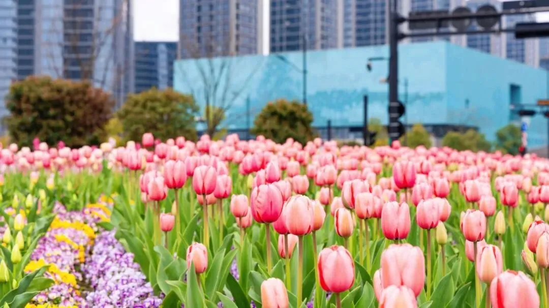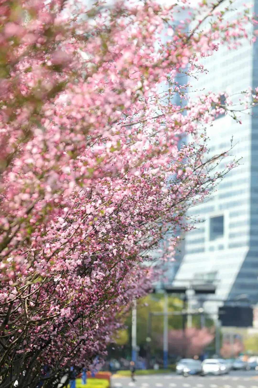 萧山的各个花园、公园,甚至街角路边,处处藏着春天的惊喜:或许是小区围墙边探出的一枝海棠,或许是公交站旁忽然撞见的一片郁金香,又或许是上班路上不经意飘落的樱花雨……