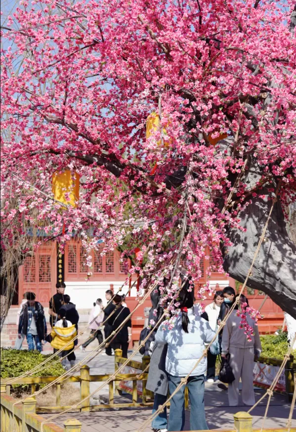 朱红的宫墙前,新绿的枝丫探出头来;福盛院内,亭台水榭掩映在春色之中;园林小径上,花瓣随风飘落。随便找一处角落,都能拍出刷爆朋友圈的照片。