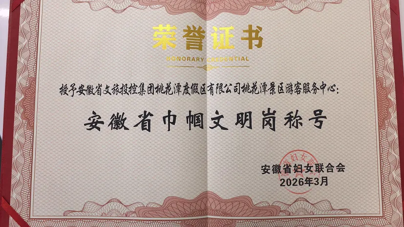 春风送暖,巾帼生辉。在第116个“三八”国际劳动妇女节来临之际,安徽省文旅投控集团旗下桃花潭景区游客服务中心荣获“安徽省巾帼文明岗”称号。这份荣誉是对桃花潭旅游公司全体女职工立足岗位、建功立业的高度肯定与褒奖,彰显了桃花潭景区游客中心服务团队的巾帼风采与优质服务实力。