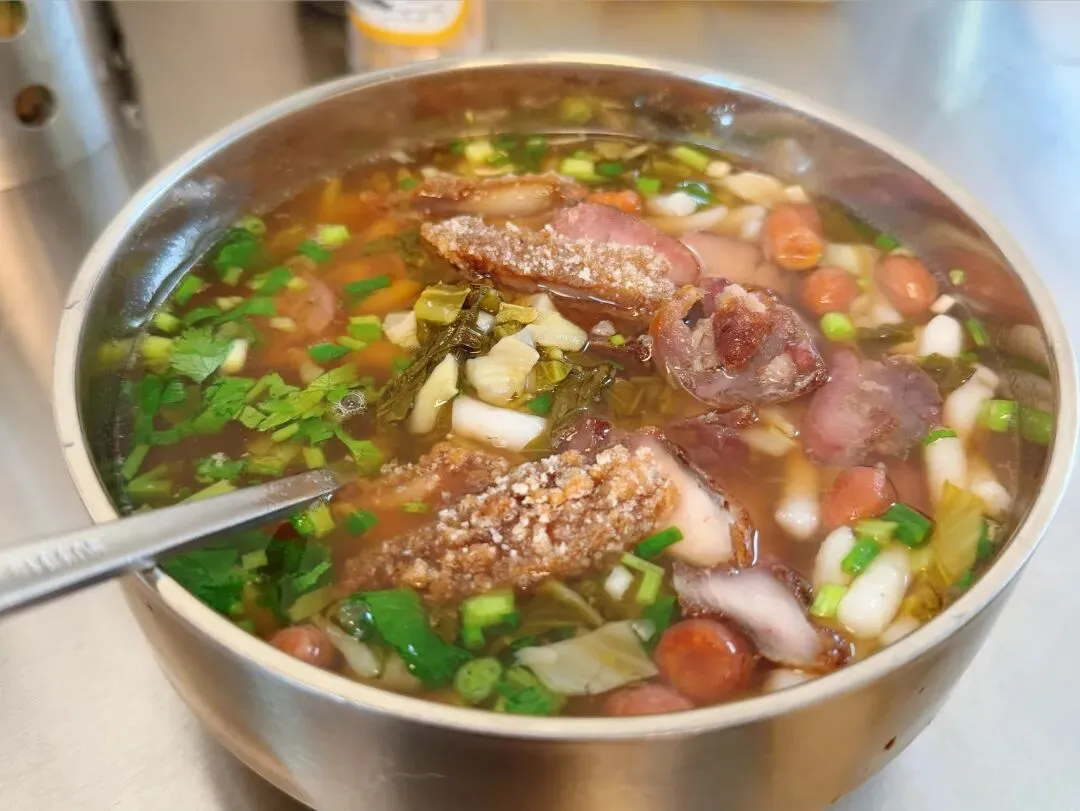 满满一大碗,汤很清加了酸菜,肉忘记问是什么了🥲