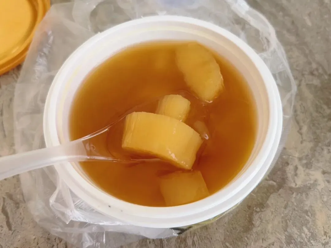 没有吃出红糖的香甜味,加了酸梅粉也不是很明显,只有突出的辣味。水果没有腌制的不是很入味,味道都只在表层
