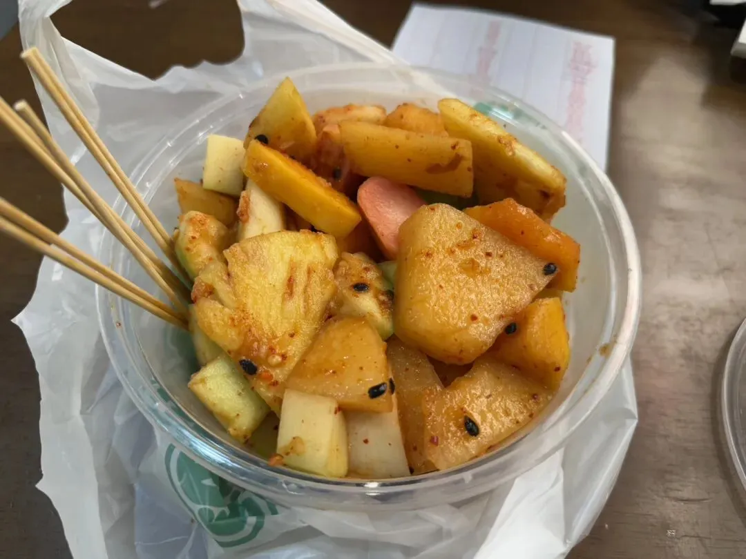 这是路上看到随便买的,和朋友都觉得还不错,吃了几家酸嘢还是最喜欢这家,个人觉得没有必要非去网红店啦,每家调味和腌水果的味道都有点不同,自己喜欢最重要啦~