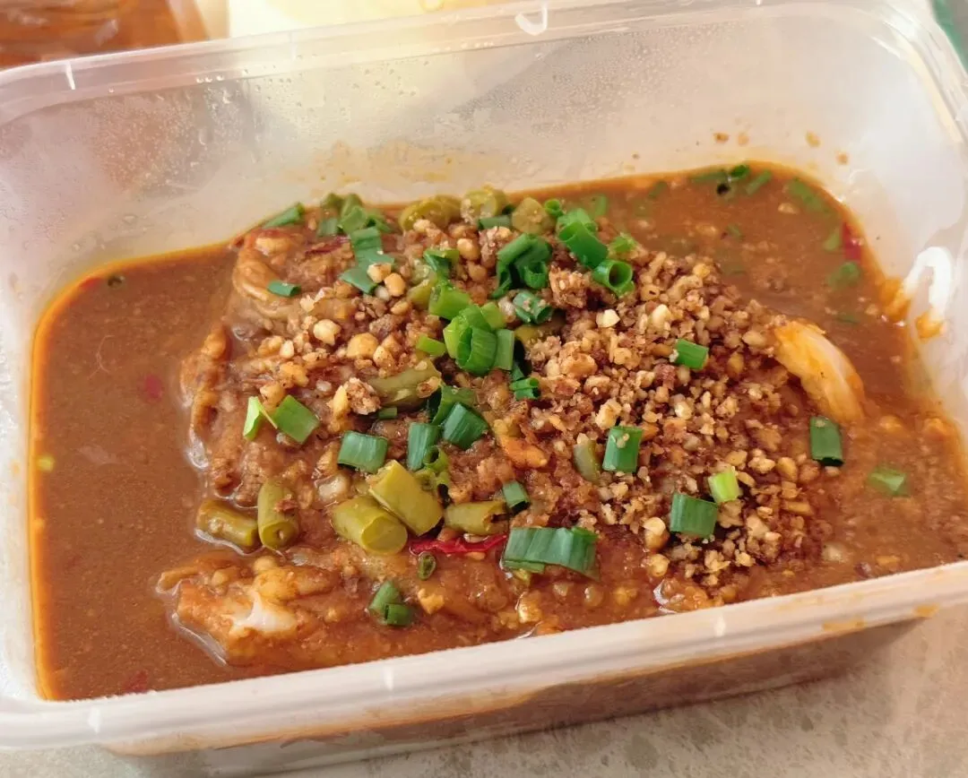 和肠粉差不多,本身有浓稠的酱汁,还给了一袋汤,都倒进去了不知道吃法对不对,甜咸口还蛮好吃的,酸豆角略咸了