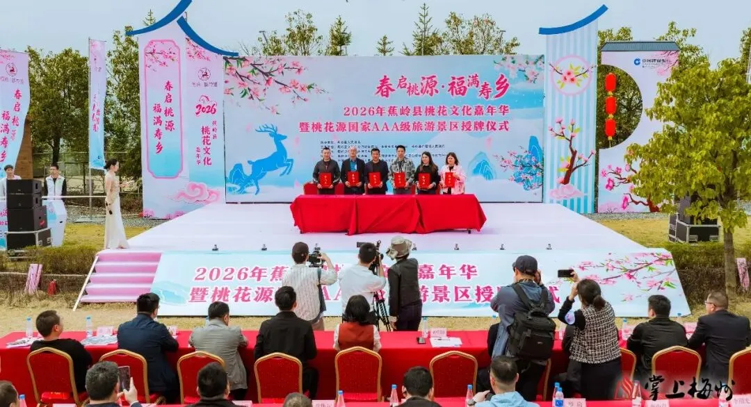 三月桃源花似锦,寿乡迎客启新程。3月7日,“春启桃源·福满寿乡”2026年蕉岭县桃花文化嘉年华暨桃花源国家AAA级旅游景区授牌仪式,在梅州市蕉岭县广福镇桃花源休闲农业旅游区正式举办。本次活动以景区成功获评国家AAA级旅游景区为契机,紧扣“以花为媒、以节促旅、以旅兴产”核心,全方位展现蕉岭农文旅融合发展新成果,为深入推进“百县千镇万村高质量发展工程”注入强劲动能。
