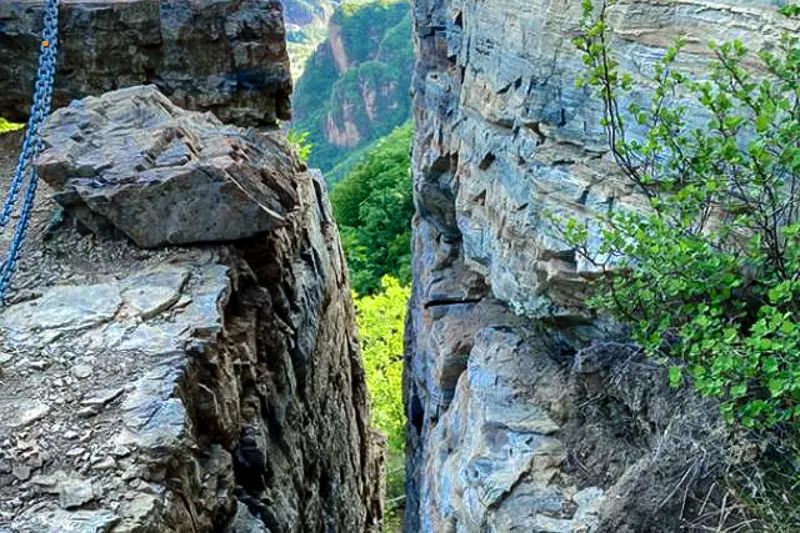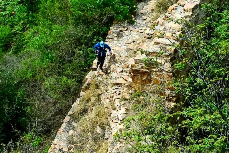 一线天可以说是这边的奇观异象,真的只允许一个人通过,这路途中的只是一处狭窄短小的裂缝处,然而想过这条路就必须要走这里,所以如果是肥胖之人真的要慎重了,大多人都需要侧身而过,我想这应该是真正的纯天然,原生态了吧,“翻山越岭”后所抵达的明长城遗址,虽然风化严重,只剩残垣断壁,但是依然有着登长城最美好的乐趣,这种沧桑是深沉的却又很是美好!
