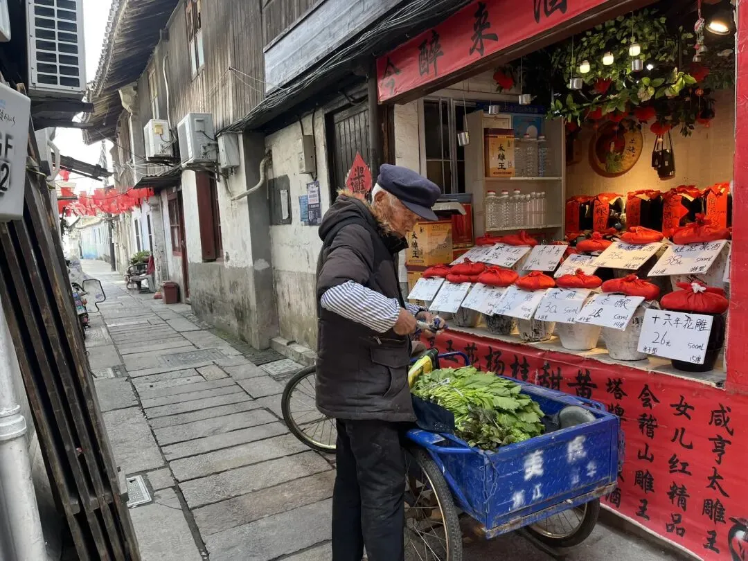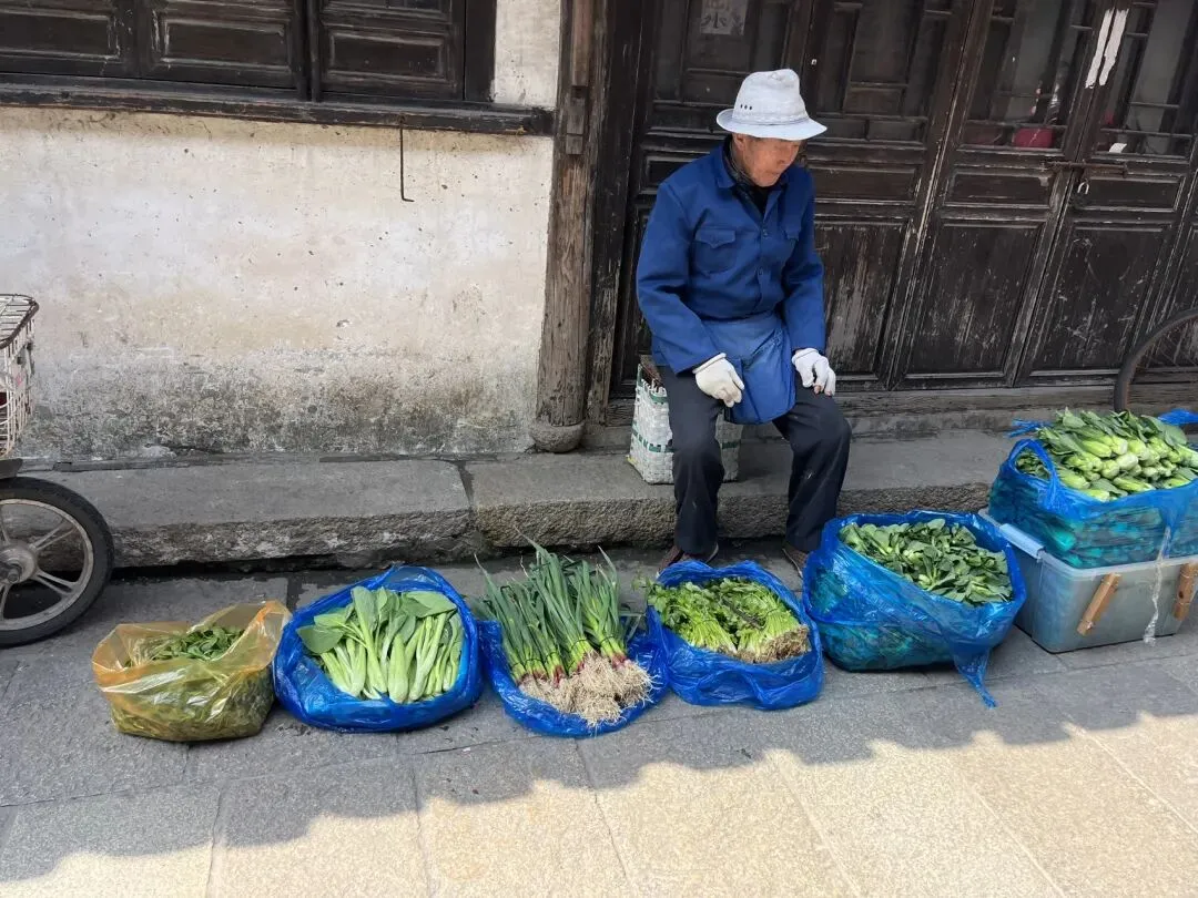 狭小的古镇小街除了游人,最多是卖菜的老人,水灵灵的便宜新鲜蔬菜🥬引得行人驻足,更有游人哈哈大笑,咋来景区像上菜场一样了?