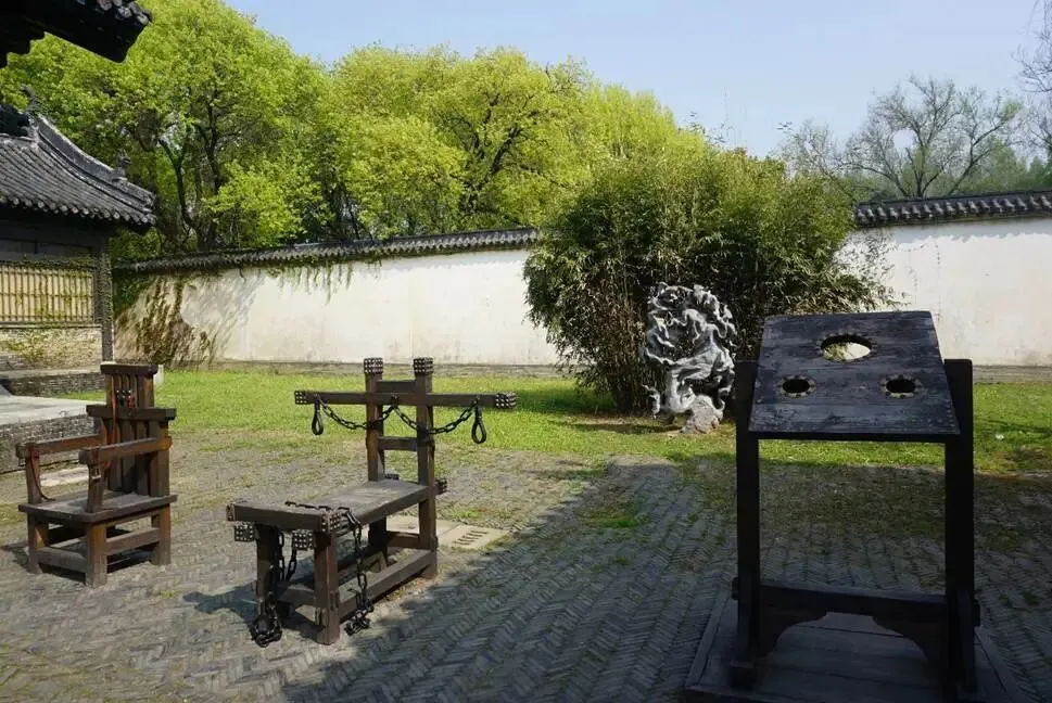 县衙里展示着一些行刑的器具,脑中不禁想象着那些残忍的画面,让人不寒而栗。