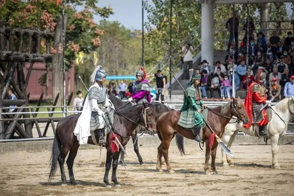 城中有丰富多彩的节目演出,强烈的视听效果,让人回味无穷。其中,最精彩的是《三英战吕布》,演出地点在跑马场,每天有两场。