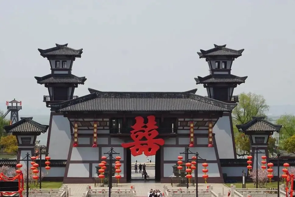 影视基地主要分为三国城、水浒城和唐城三个部分。三国城位于太湖之畔,迎面就是烟波浩渺的太湖,后面则是十里葱茏的军嶂山。进入三国城,你会被眼前高大雄伟的城门楼所吸引,这就是当年《三国演义》中诸葛亮智设空城计的拍摄地。