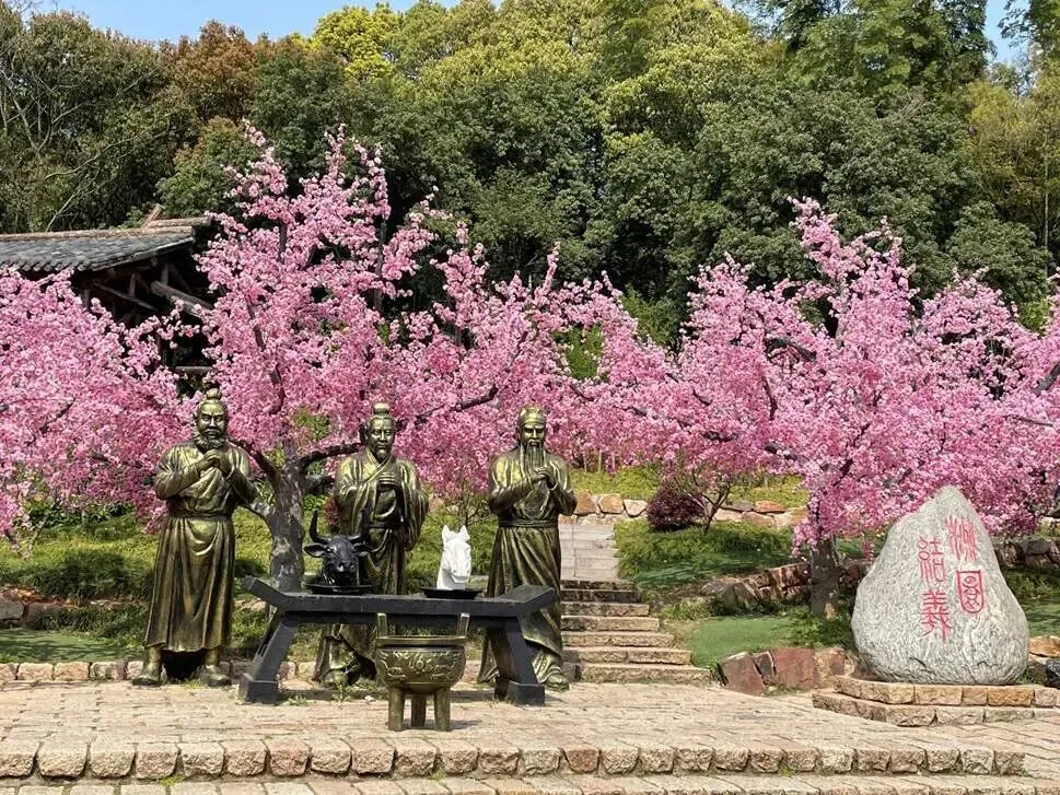 三国城里有一大美景,四季桃花盛开,园内曲径通幽,这就是“刘关张”饮酒立誓的“桃园”。电视剧《三国演义》里刘关张三人结义的场景就是在这里拍摄的。