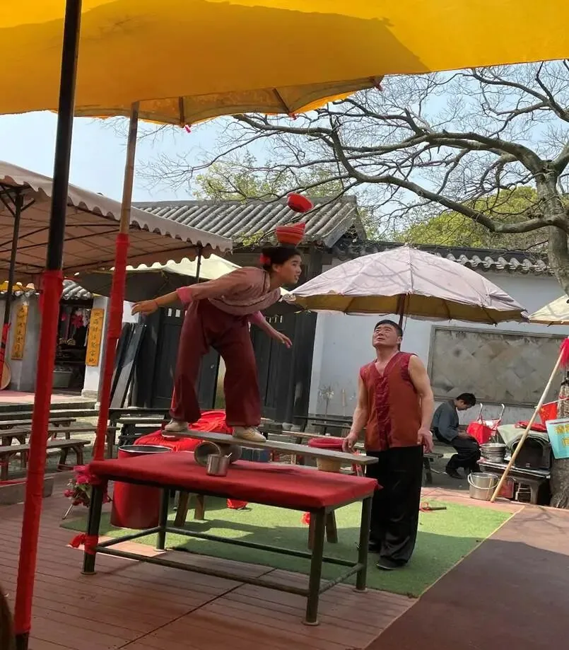 此外,还有杂技表演,小姑娘表演得十分精彩,可见平时下了不少功夫。