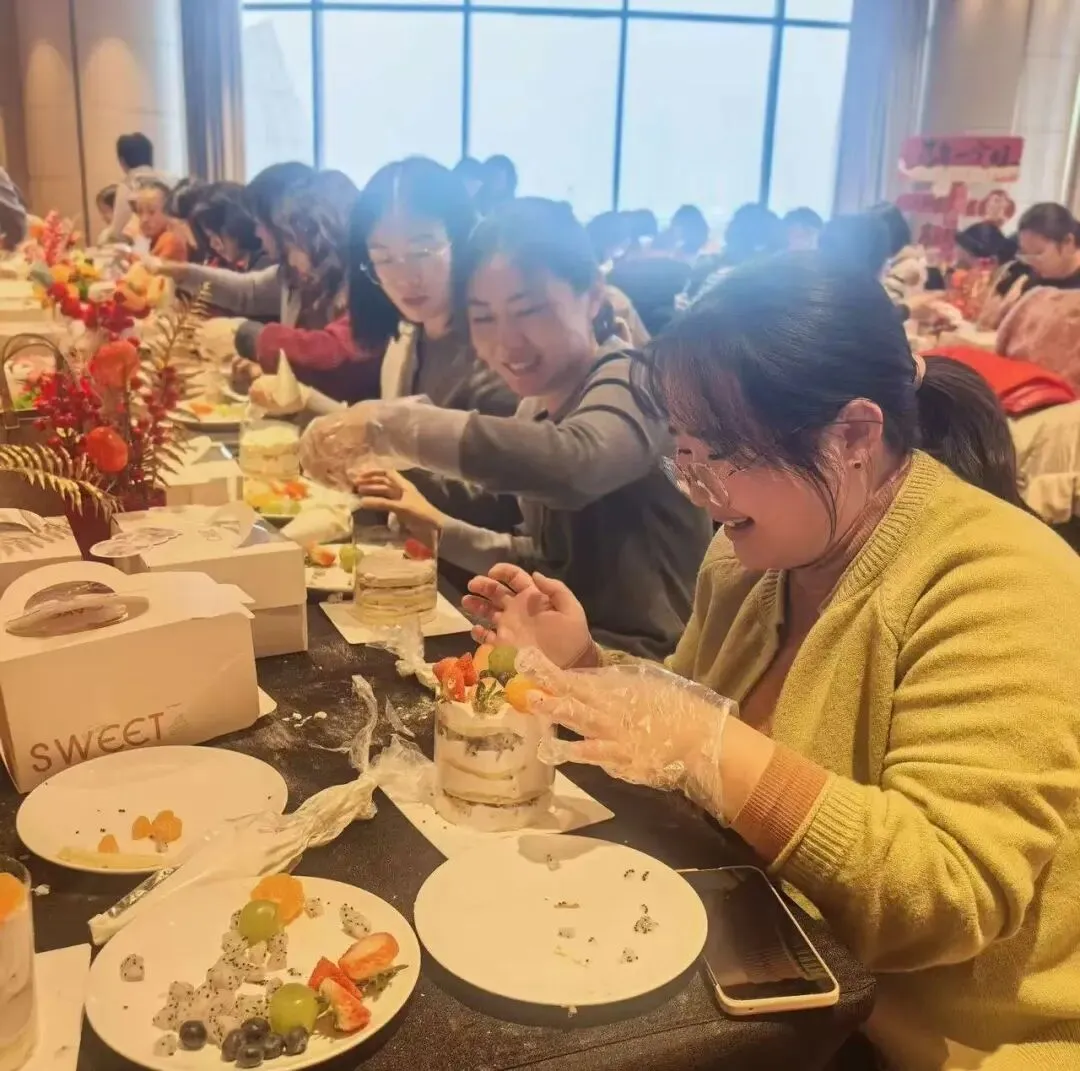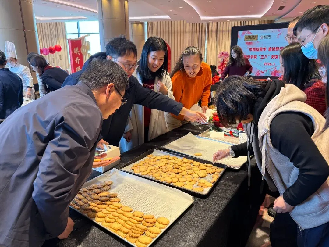 大家在亲手制作蛋糕、曲奇饼干的过程中,一边交流烘焙技巧、分享创作心得,一边畅谈工作感悟、共话发展愿景,欢声笑语萦绕现场,在指尖的创意与甜蜜的滋味中,传递着节日的美好祝福,更凝聚起校企携手、同向同行的巾帼力量。